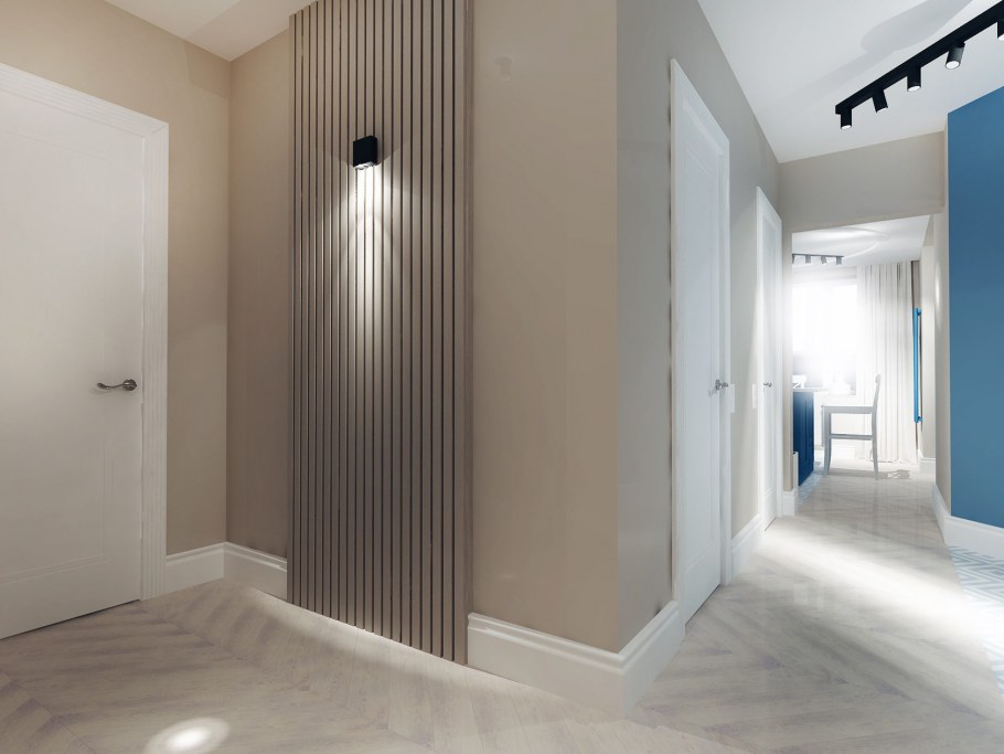 Деревянная рейка в интерьере коридора с зеркалом (37 фото)