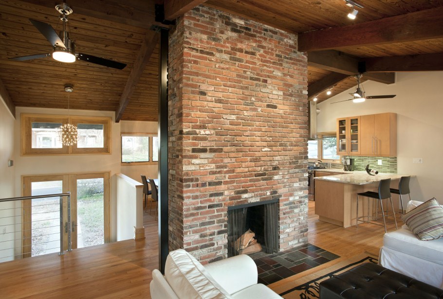 Сочетание кирпича и дерева в интерьере