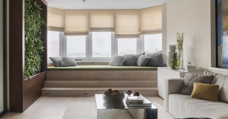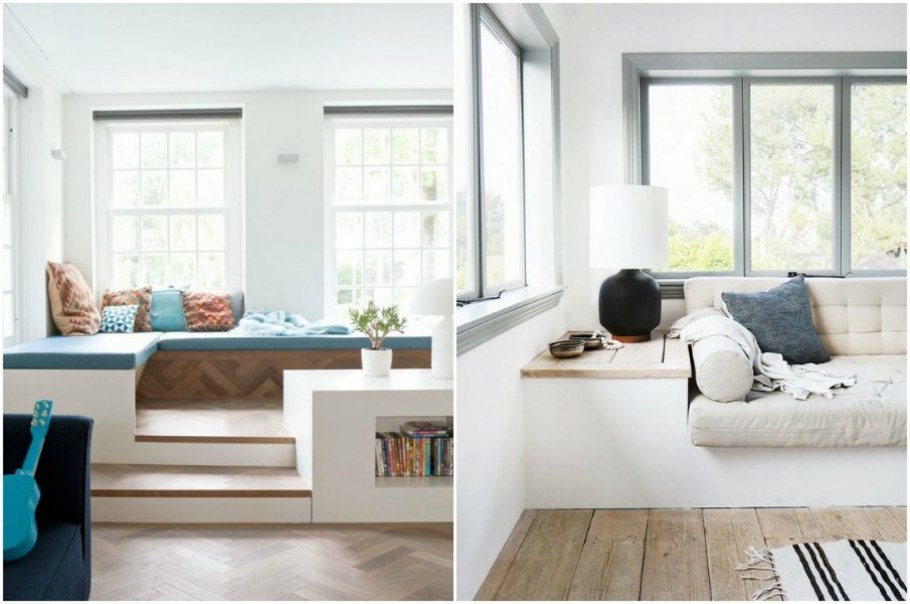 Мягкий подоконник в гостиной