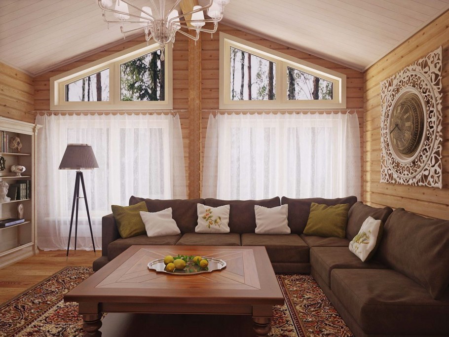 Кухня-гостиная в стиле Прованс в деревянном доме
