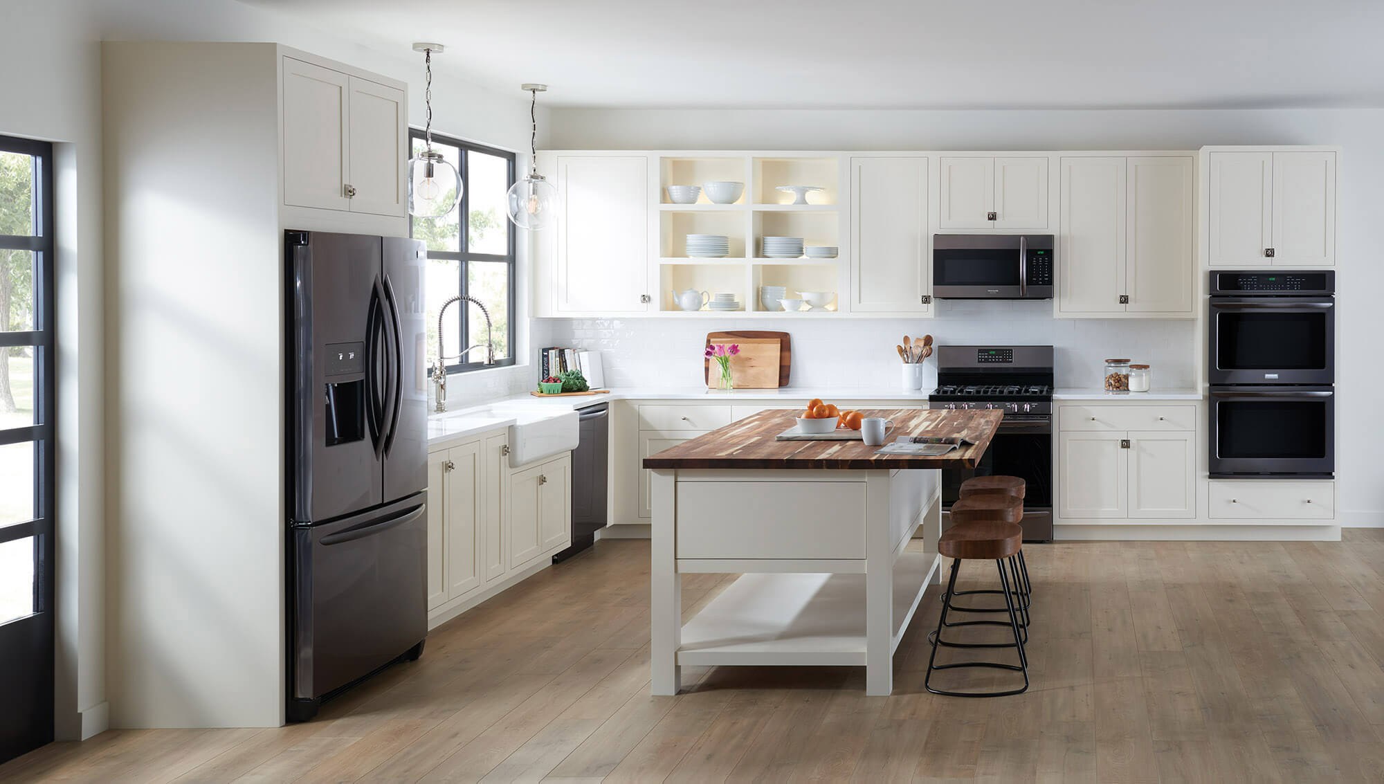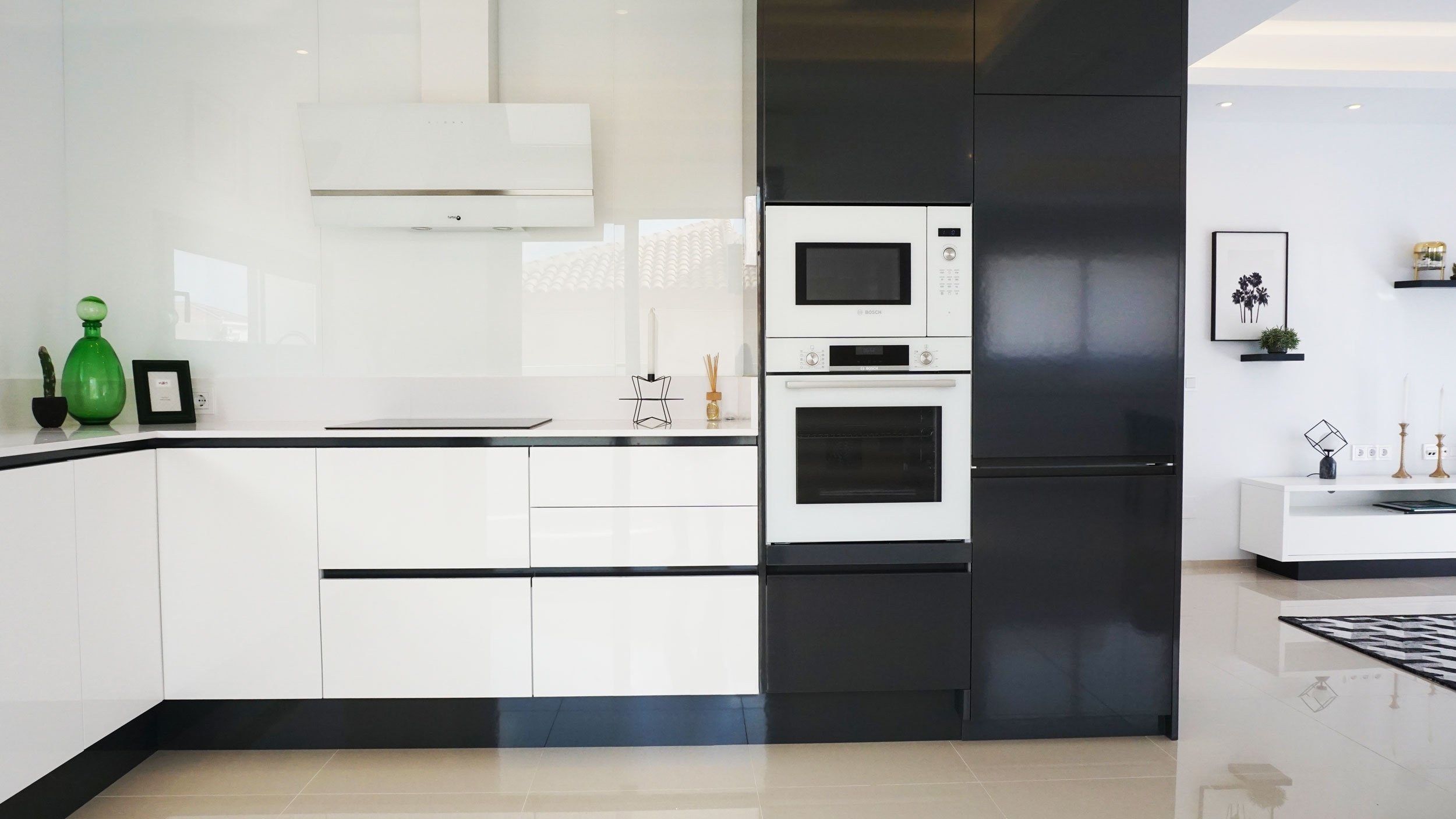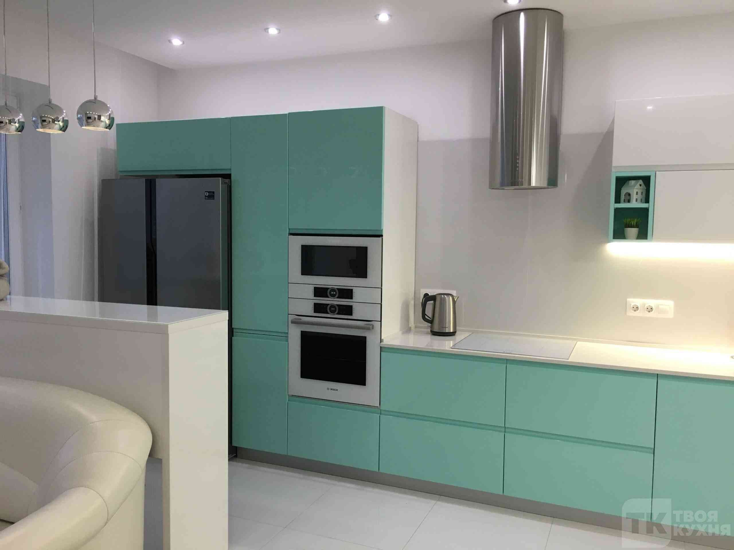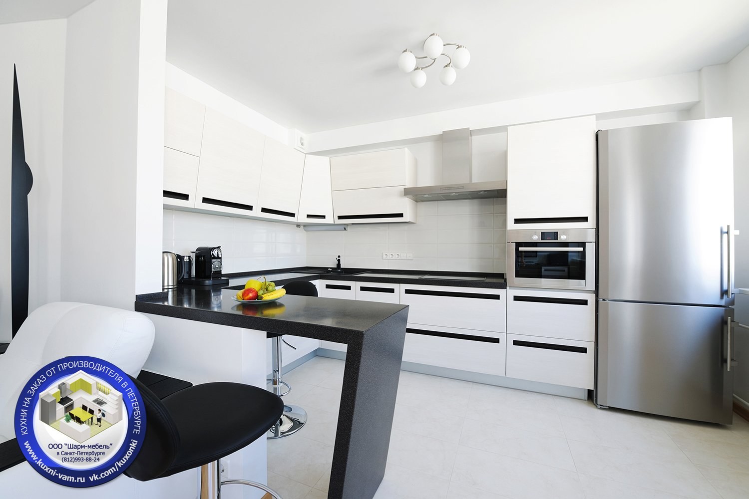 Белая кухня с черной техникой