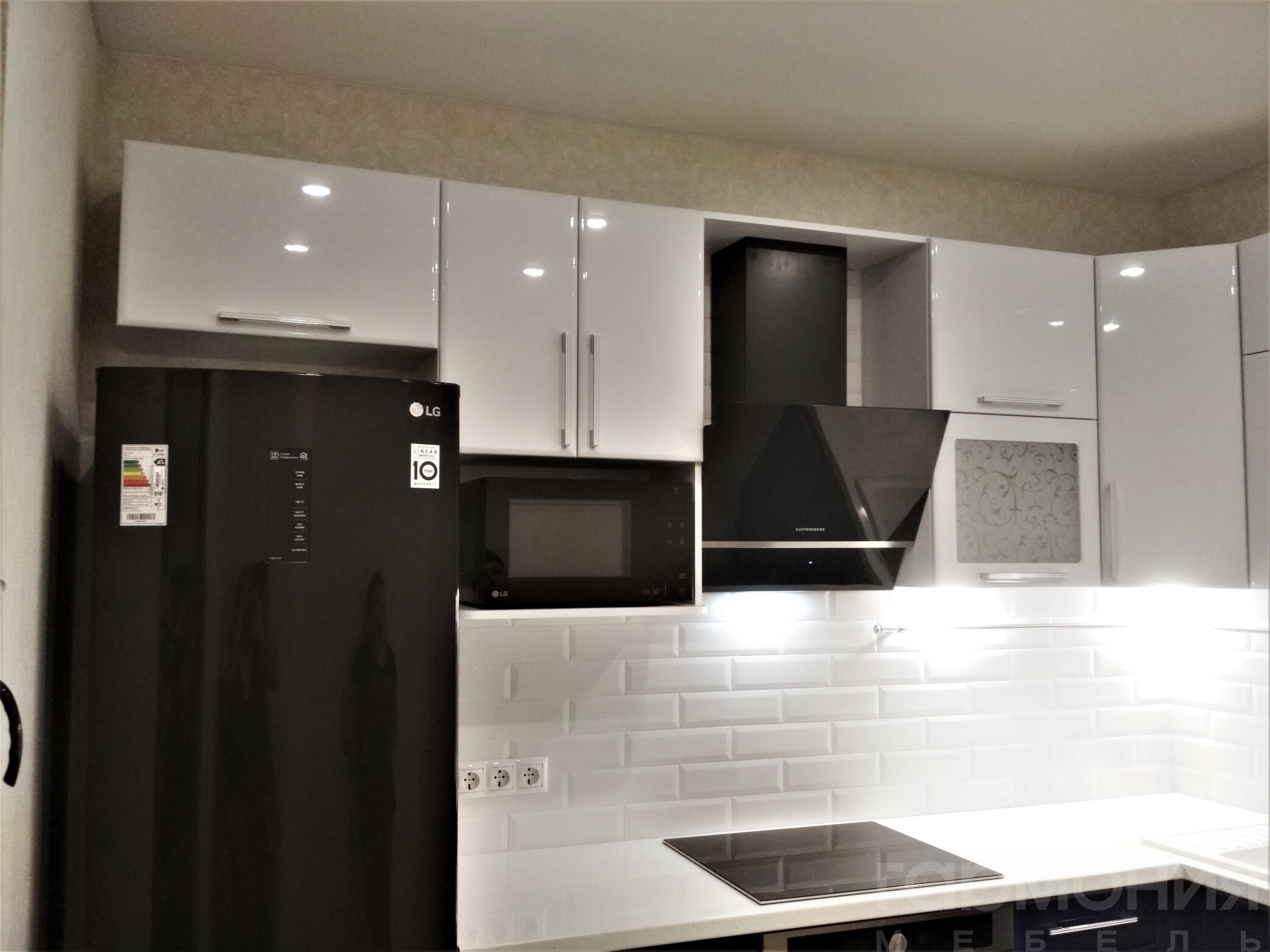 Черно белая кухня с акриловыми фасадами