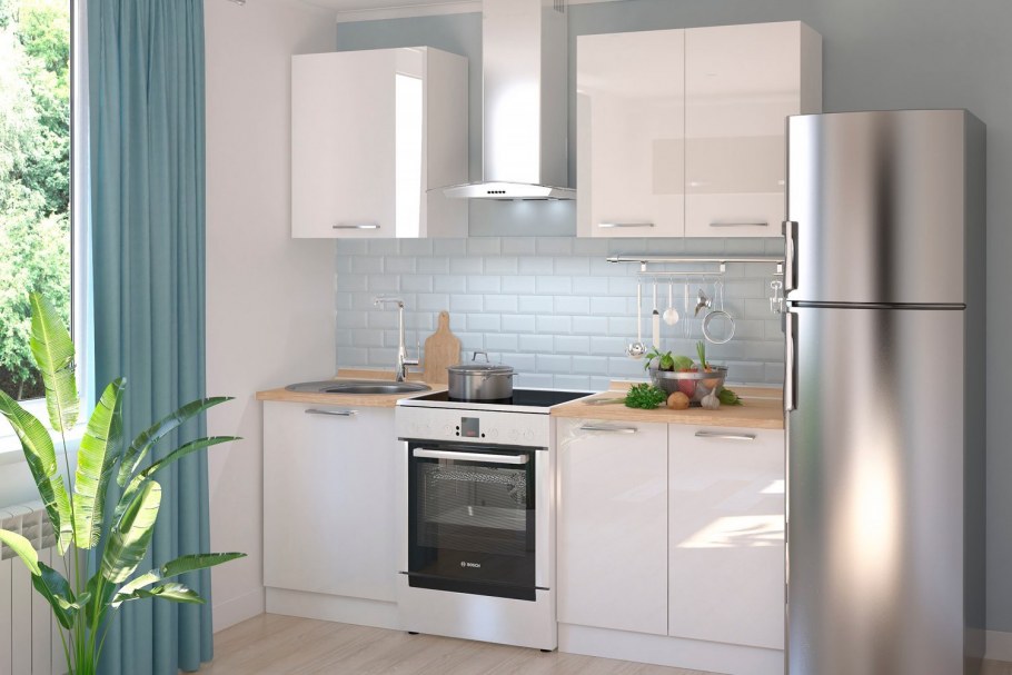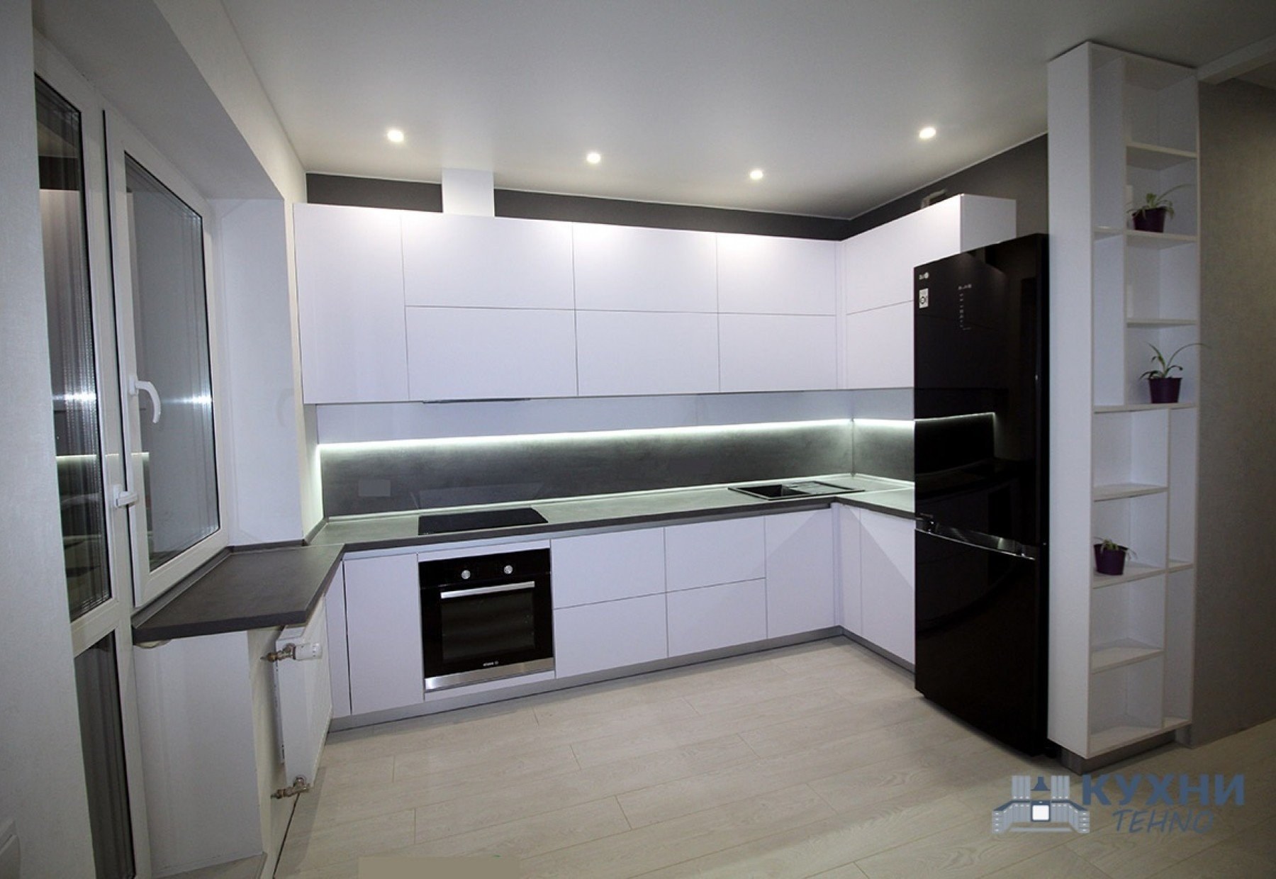 Белый кухонный гарнитур с черной техникой
