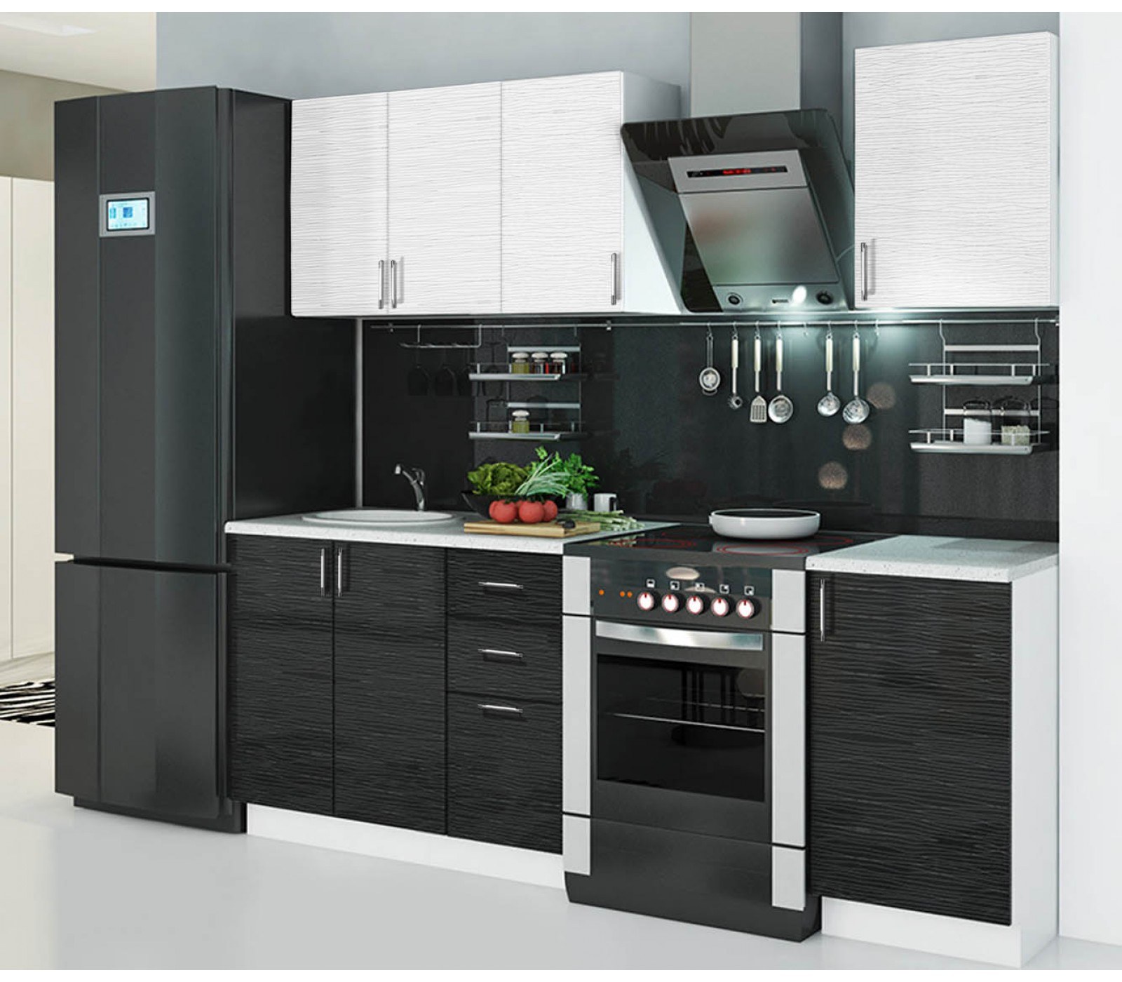 Белый гарнитур черный холодильник