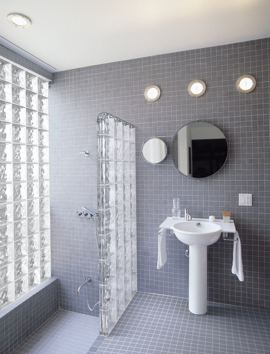 Стеклоблоки в интерьере ванной комнаты дизайн (43 фото)