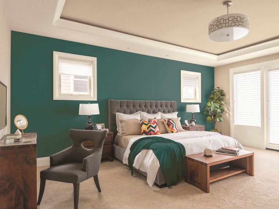Зеленые стены в спальне