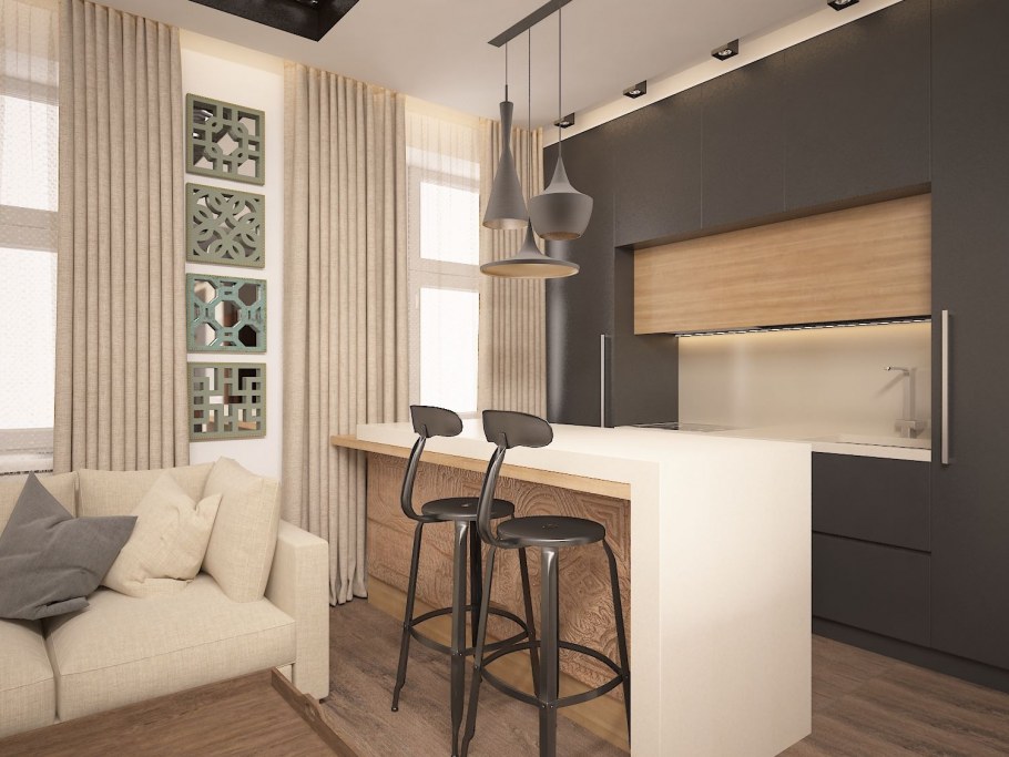 Планировка кухни-гостиной 20 кв.м прямоугольная