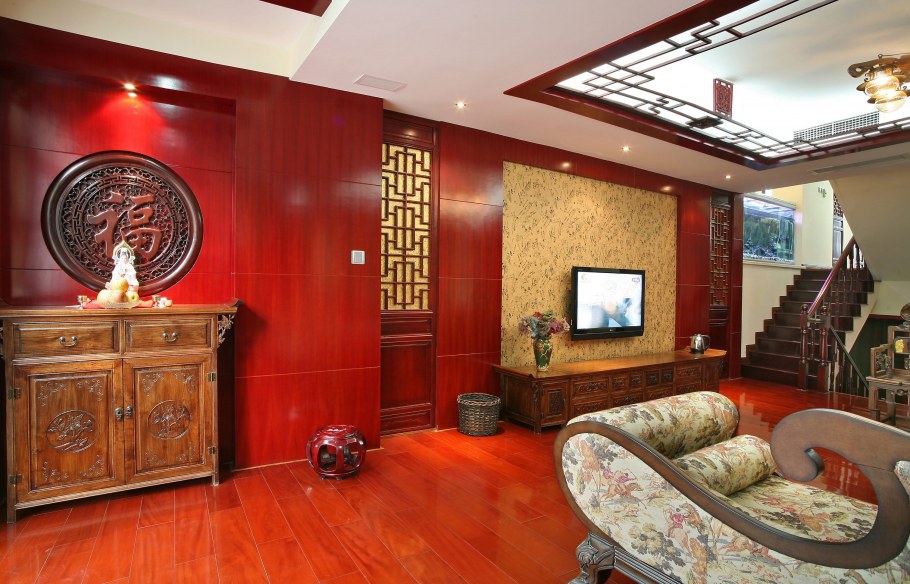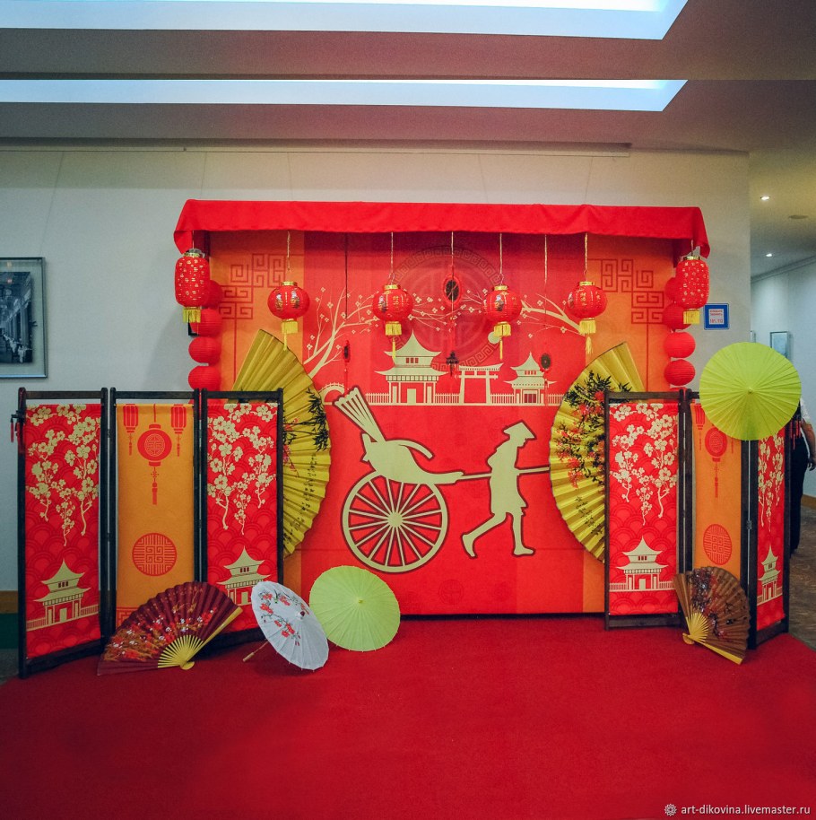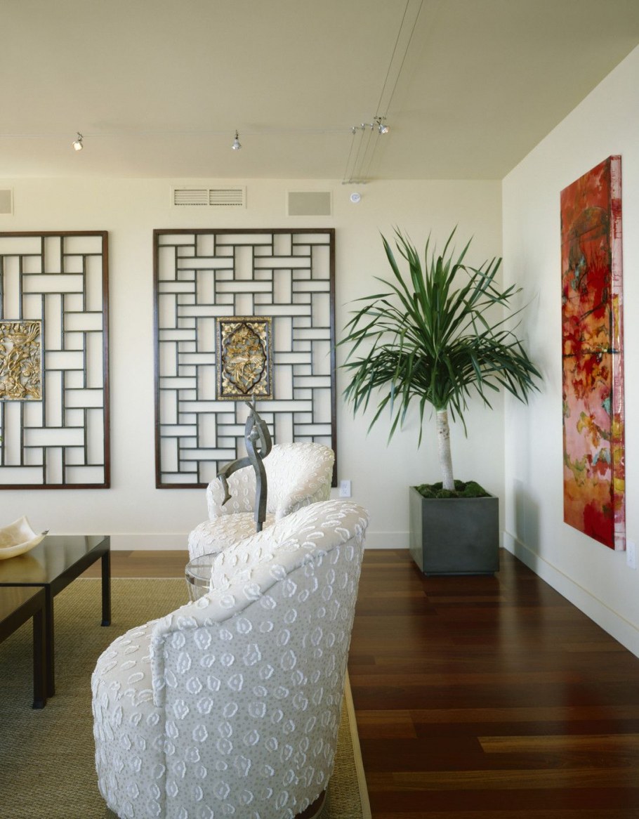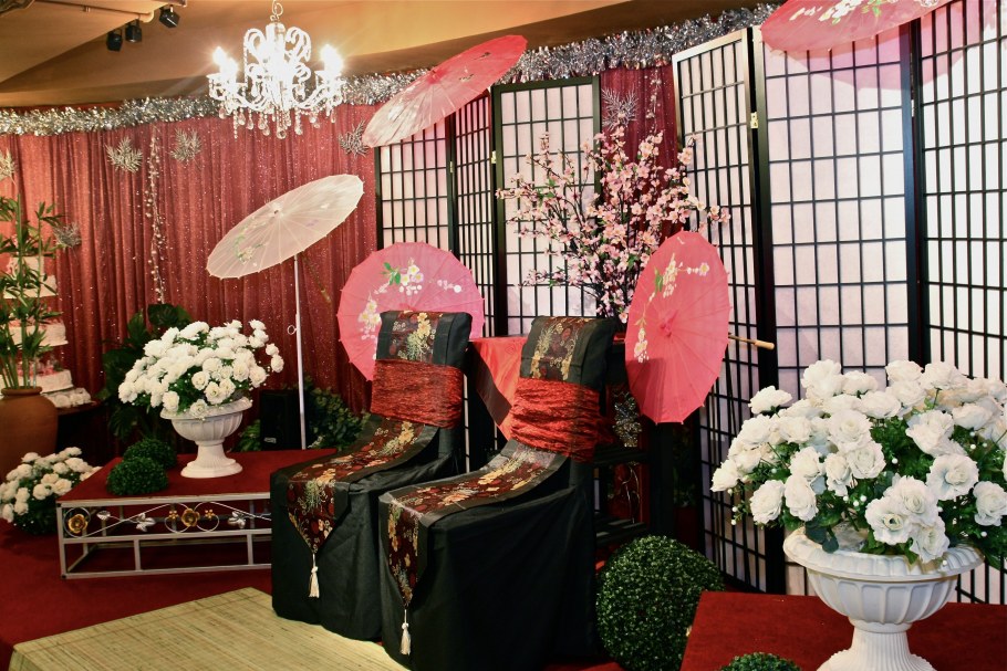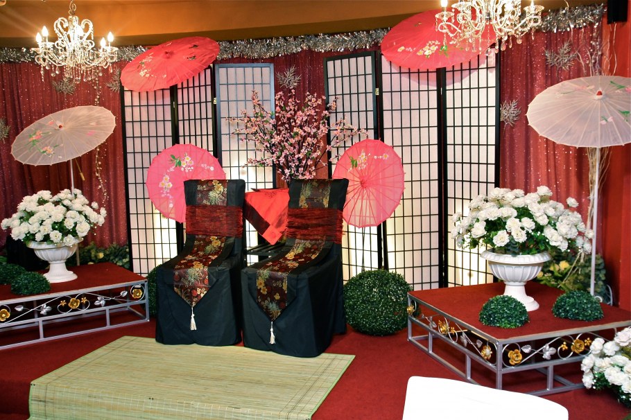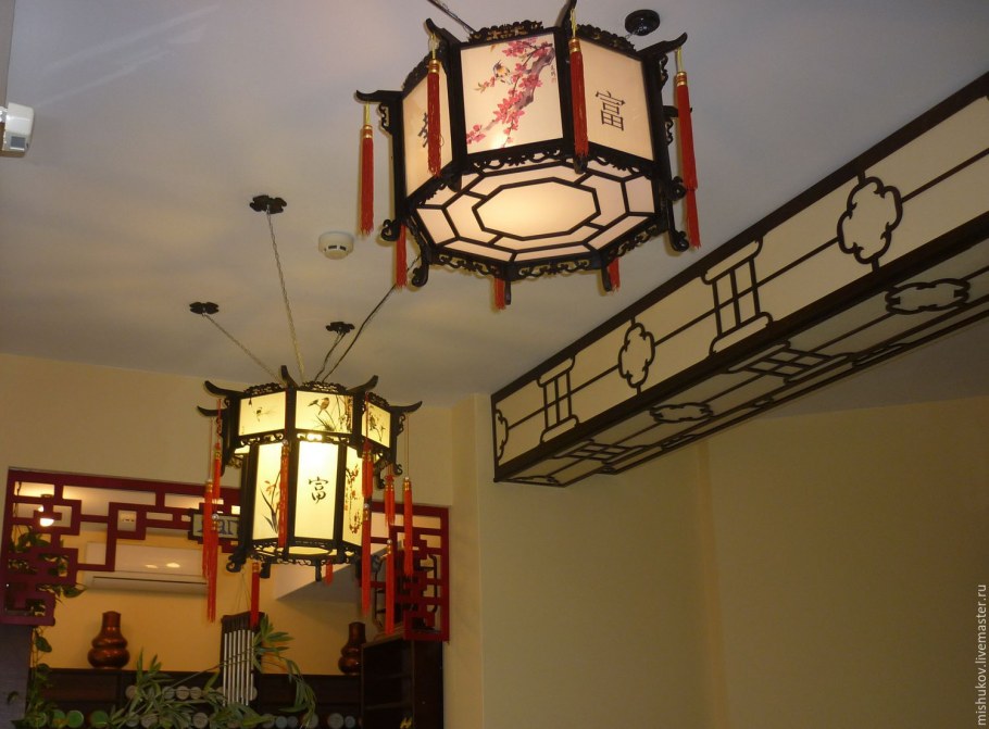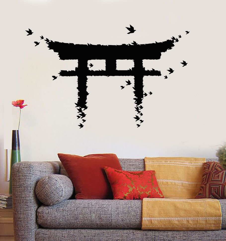 Обои Сакура в интерьере спальни в японском Восточном стиле