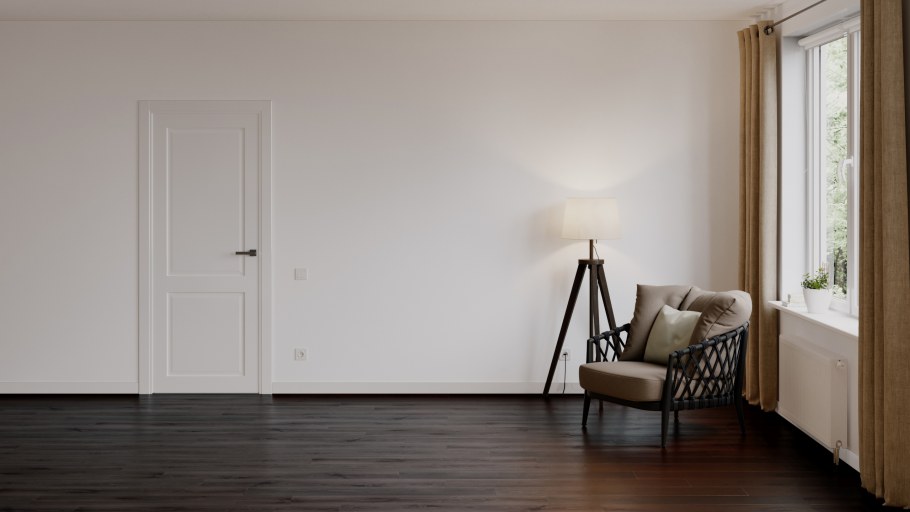 Коричневые двери и белый плинтус в интерьере (55 фото)