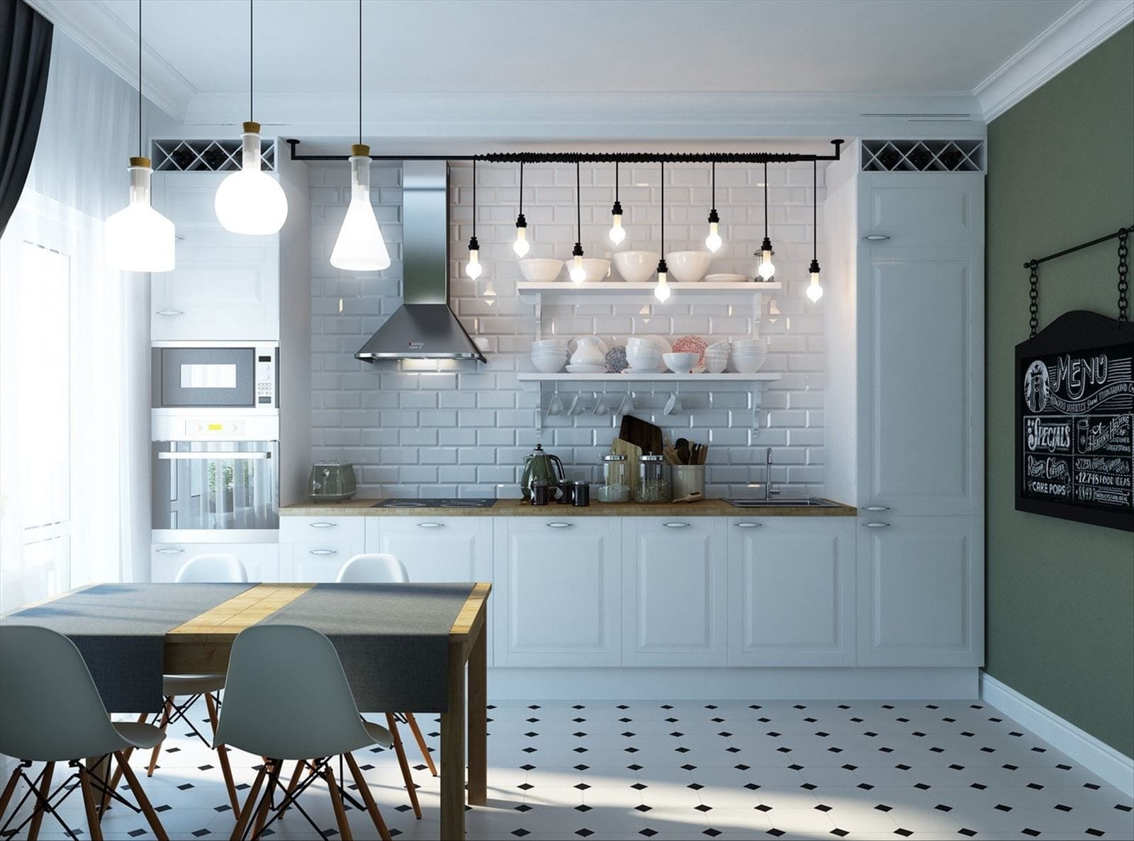 Освещение на кухне на стене