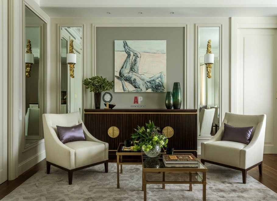Линкруста в интерьере гостиной в стиле Неоклассика