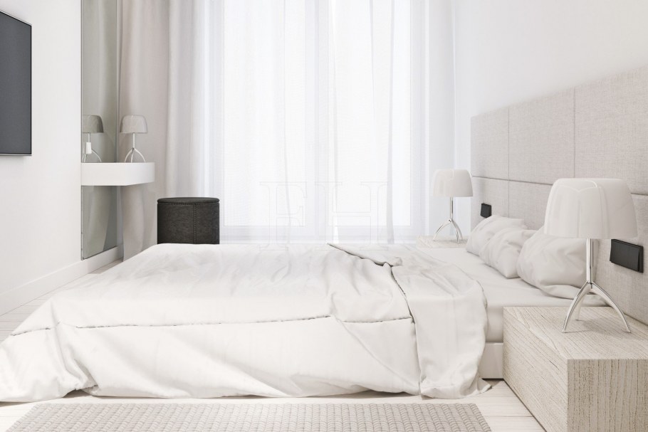 Спальня в стиле минимализм в светлых тонах в квартире (39 фото)