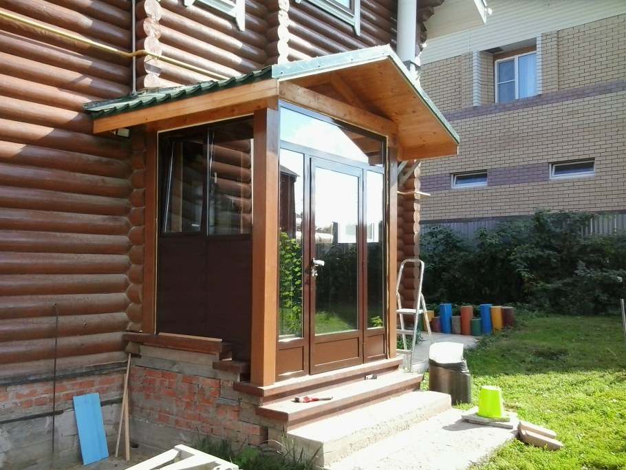 Остекление крыльца в бревенчатом доме