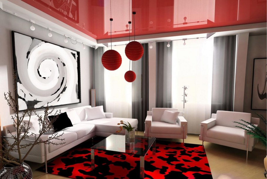 Гостиная в красно белых тонах