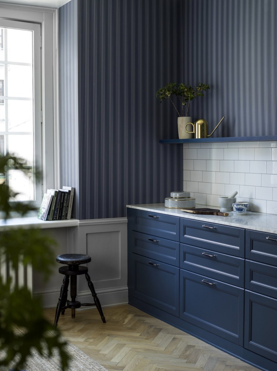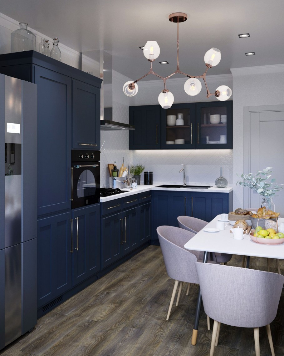 Темно синяя кухня в скандинавском стиле