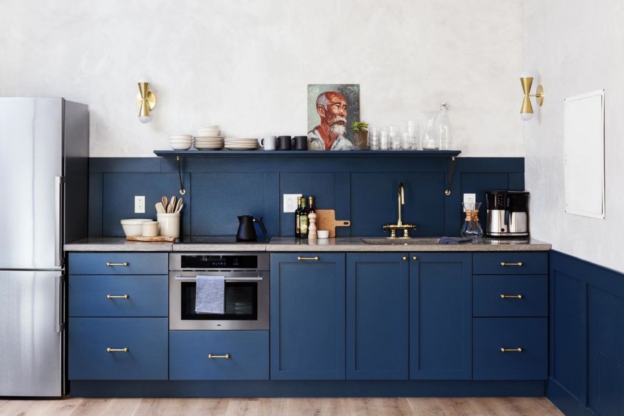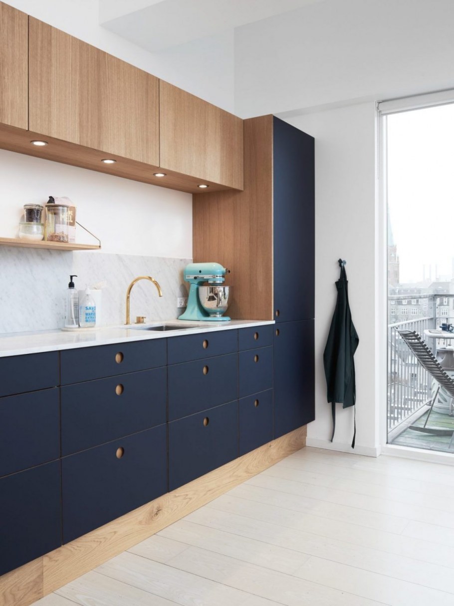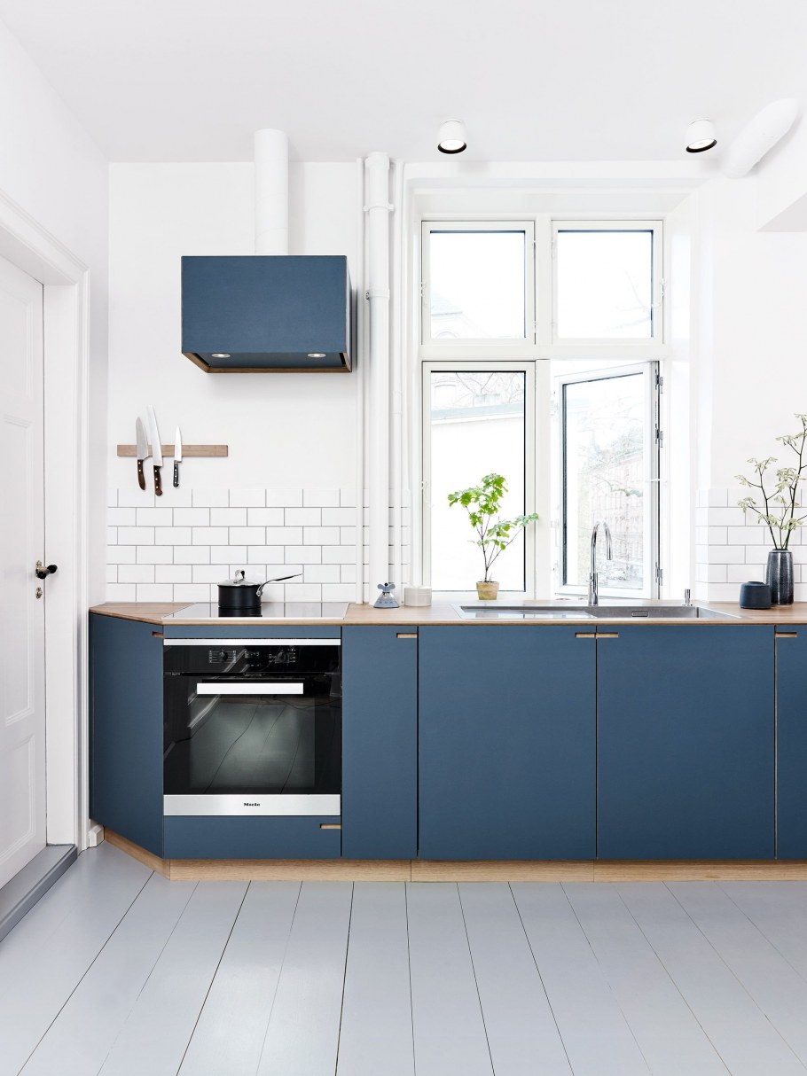 Синяя кухня в скандинавском стиле