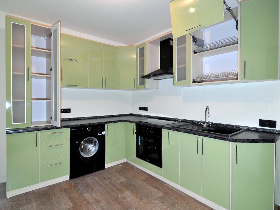 Фартук для кухни фисташкового цвета в интерьере (46 фото)