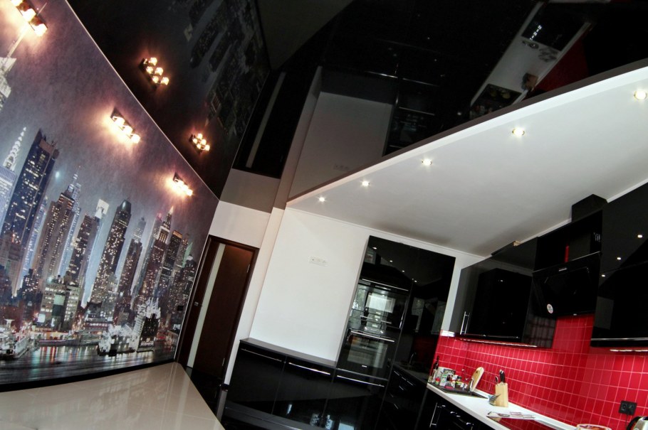 Глянцевый натяжной потолок в интерьере (35 фото)