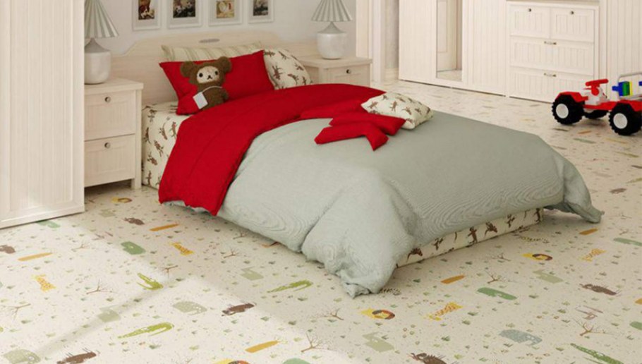 Напольное покрытие с рисунком в интерьере (43 фото)