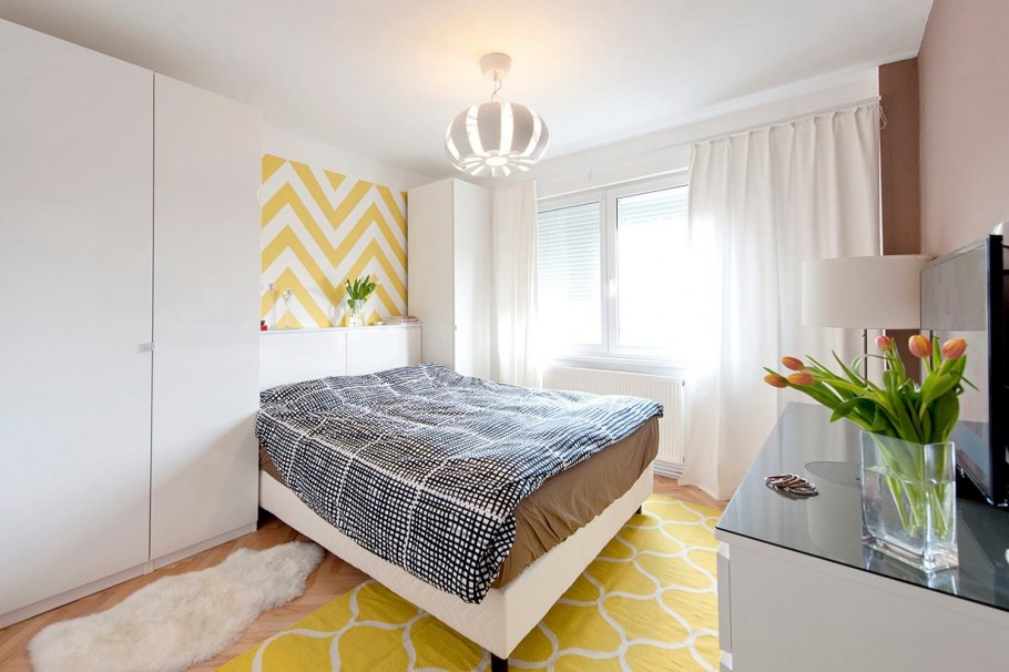 Спальня в светлых тонах с яркими акцентами (44 фото)
