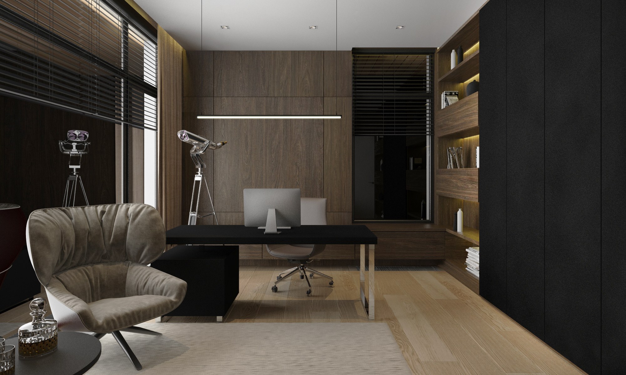 Кабинет в стиле минимализм в интерьере (44 фото)