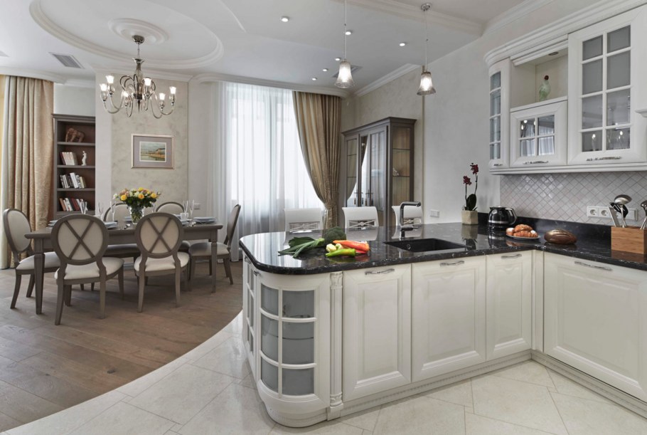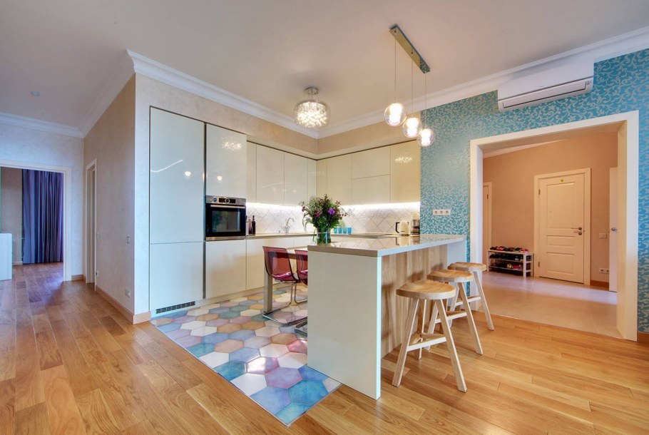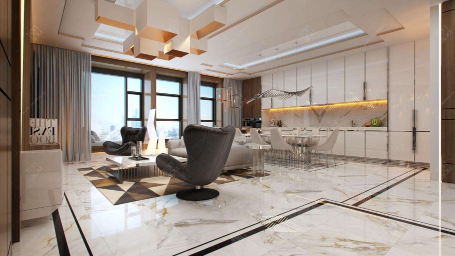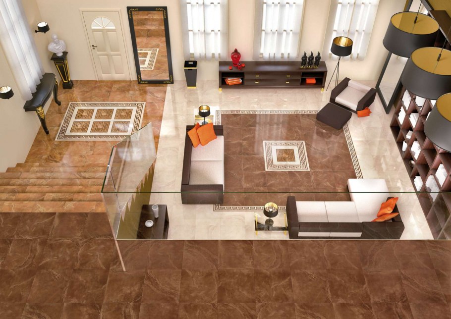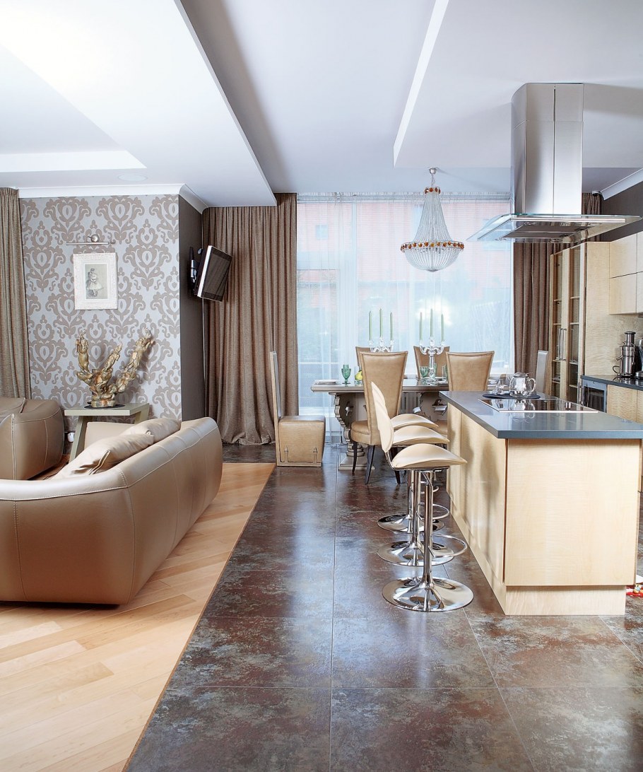 Дизайн пола в гостиной совмещенной с кухней из плитки (37 фото)