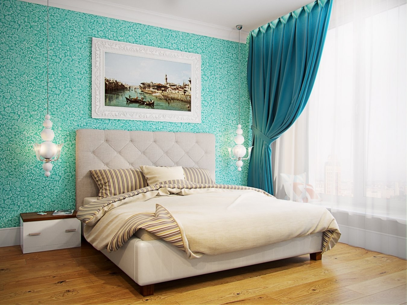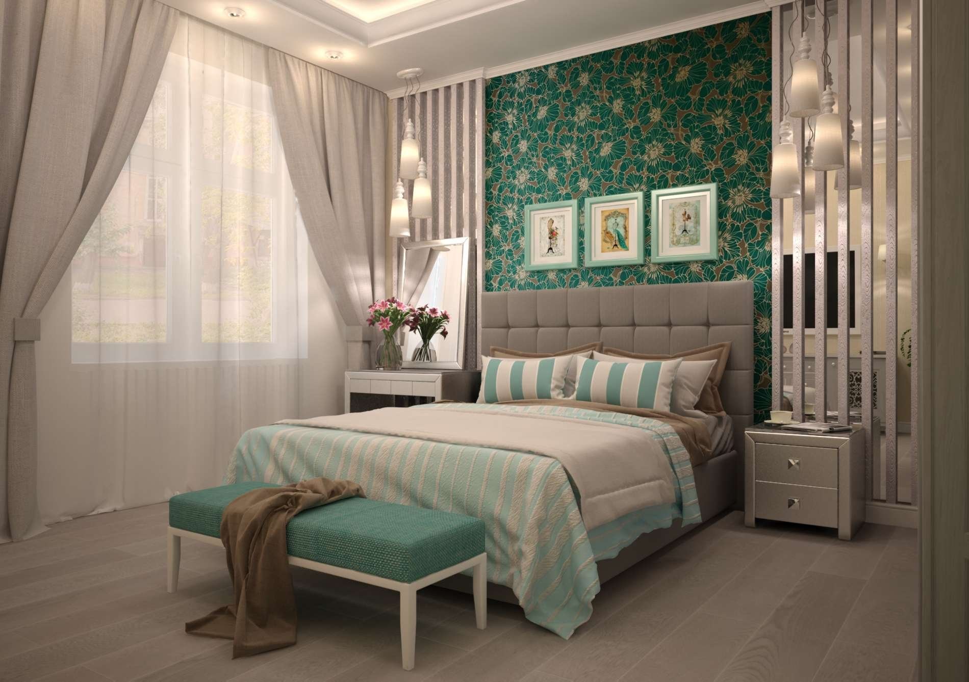 Спальня в бирюзовых тонах