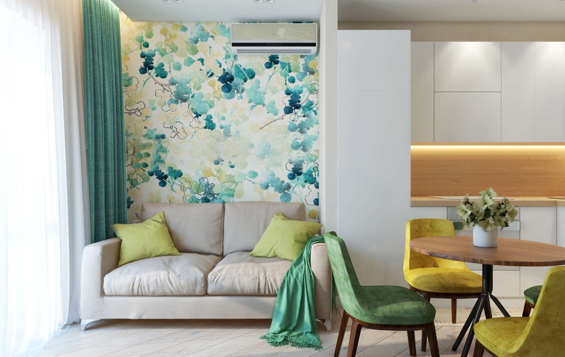 Сочетание обоев двух цветов