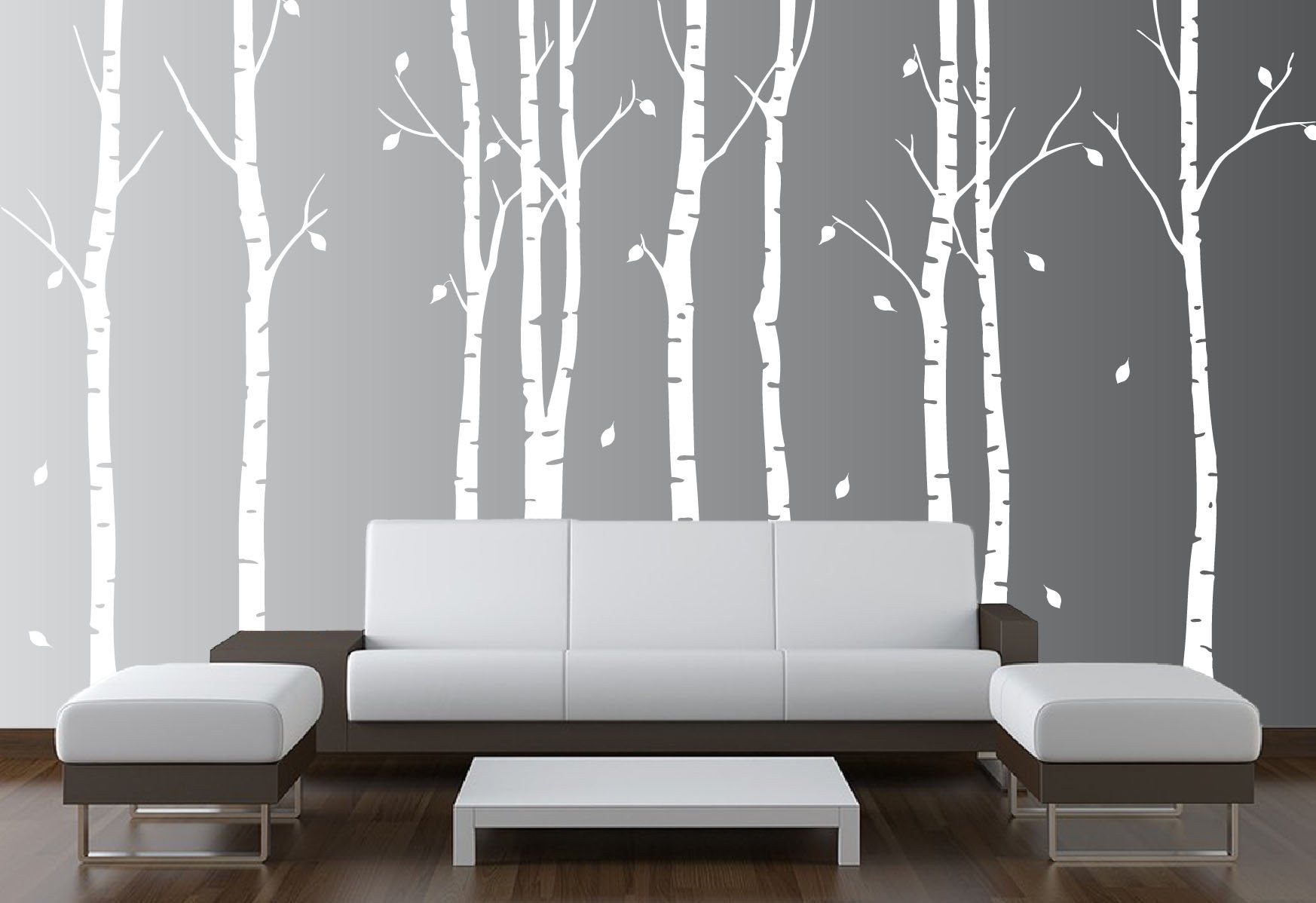 Обои березы на стену интерьер дизайн