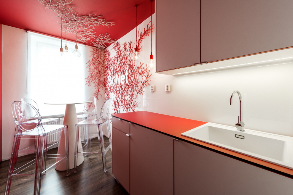 Цвет стен с красной кухней