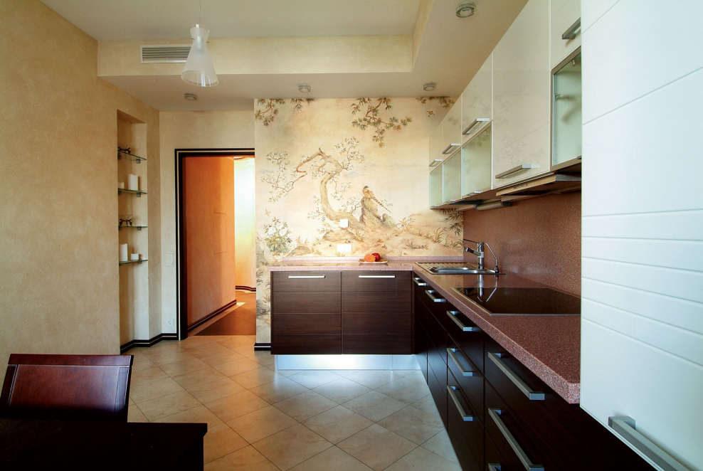 Обои в интерьере кухни