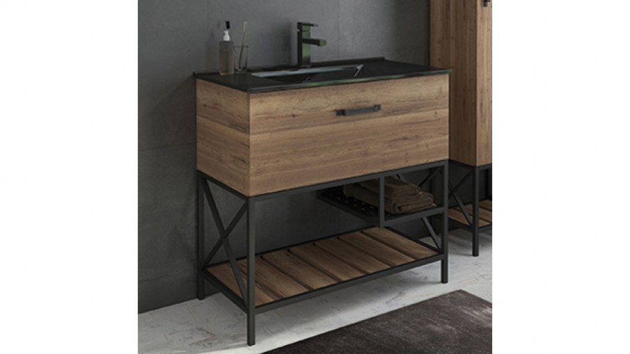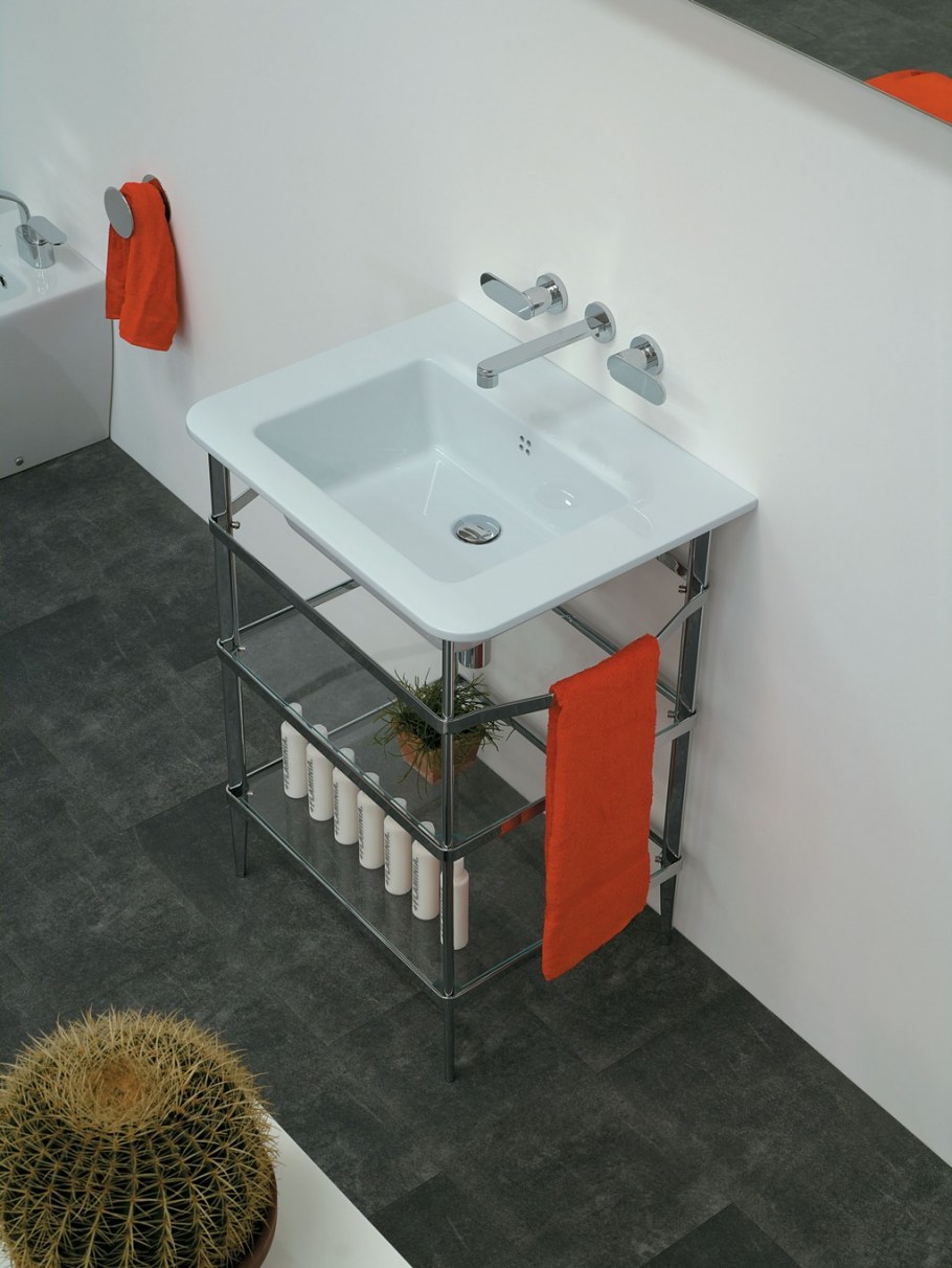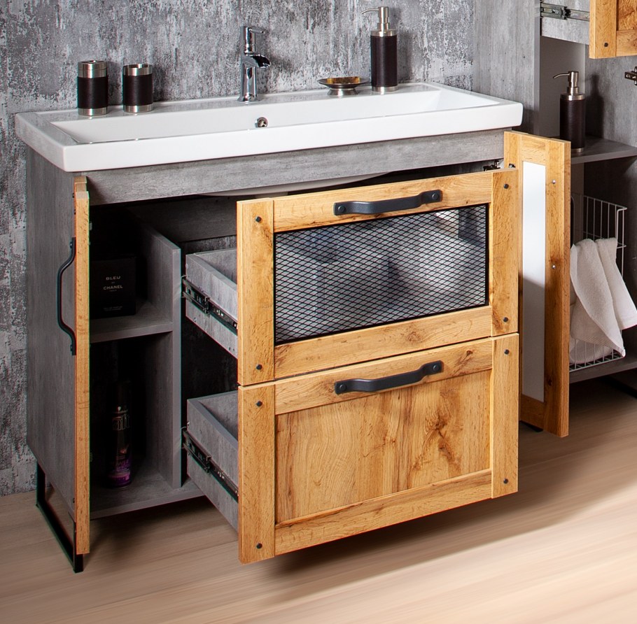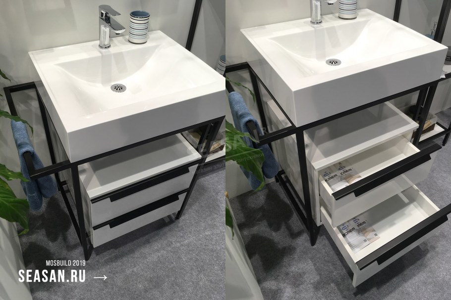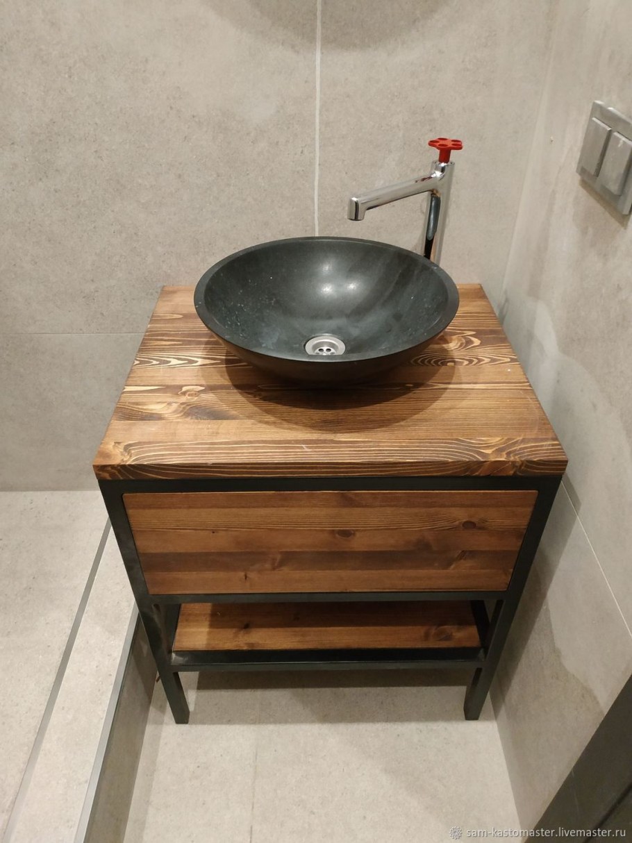Тумба под раковину на металлическом каркасе в интерьере (43 фото)