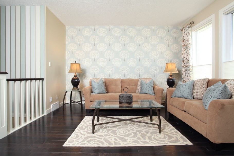 Обои двух цветов в гостиной интерьере сочетание (53 фото)