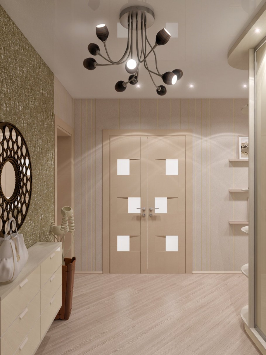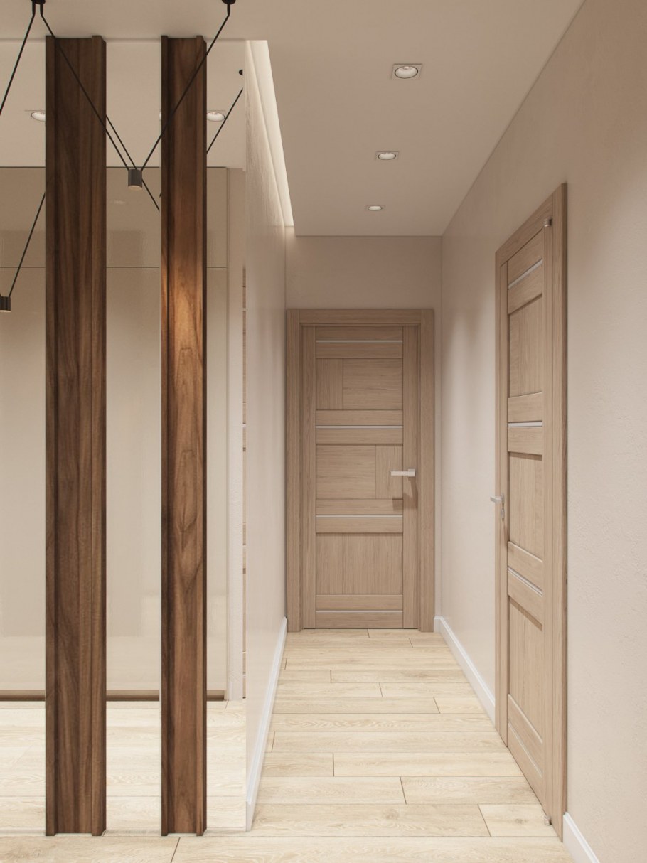 Коридор в светлых тонах со светлыми дверями (37 фото)