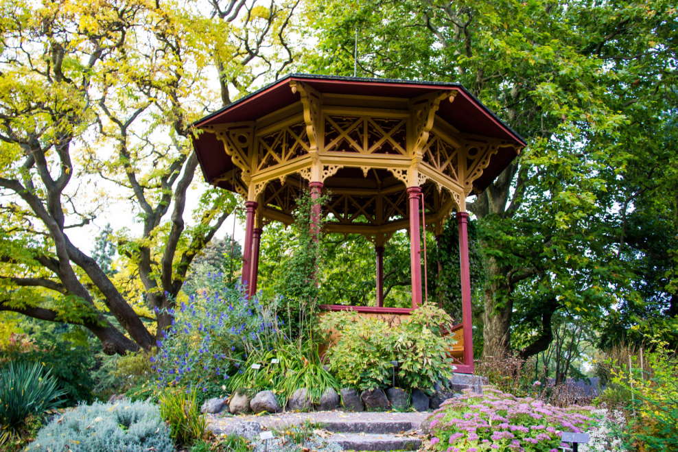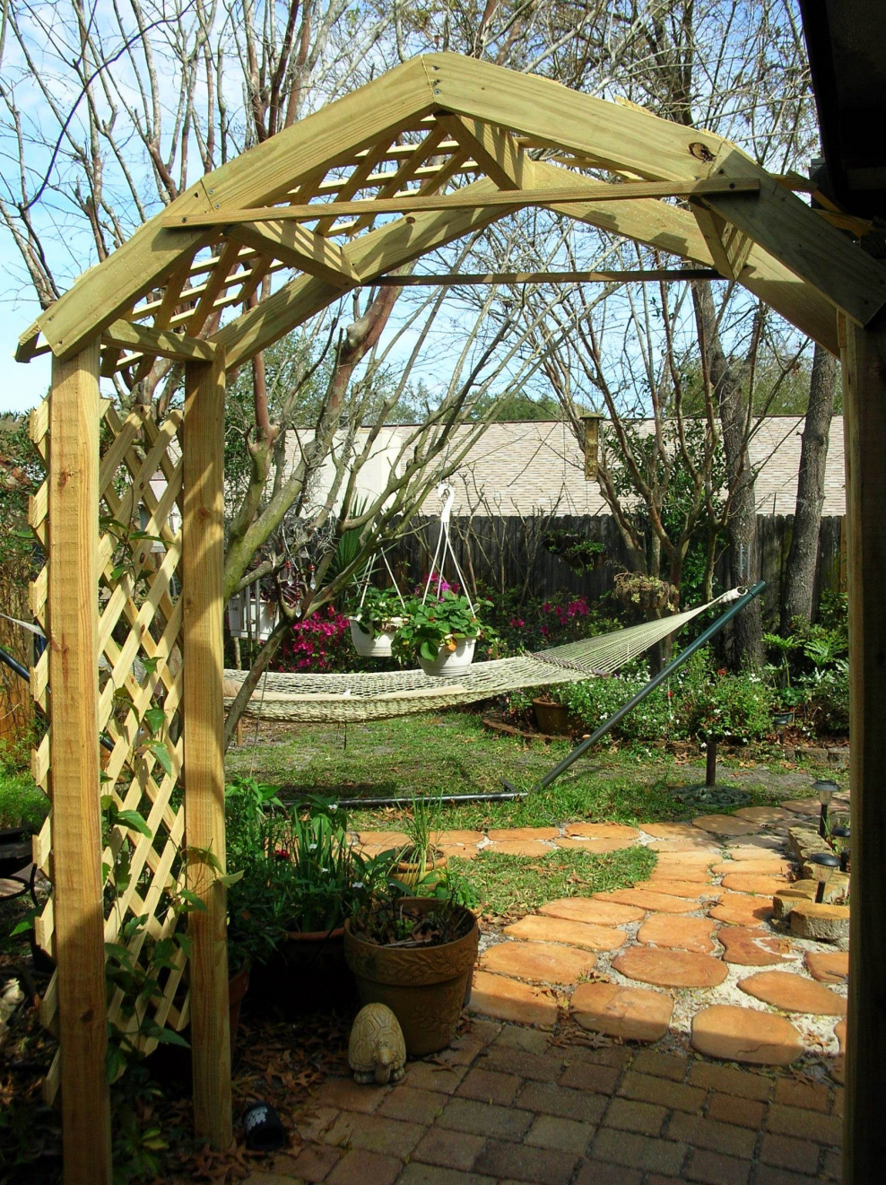 Пергола в тенистом саду
