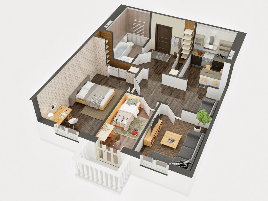 Перепланировка 2-х комнатной квартиры 60 кв.м