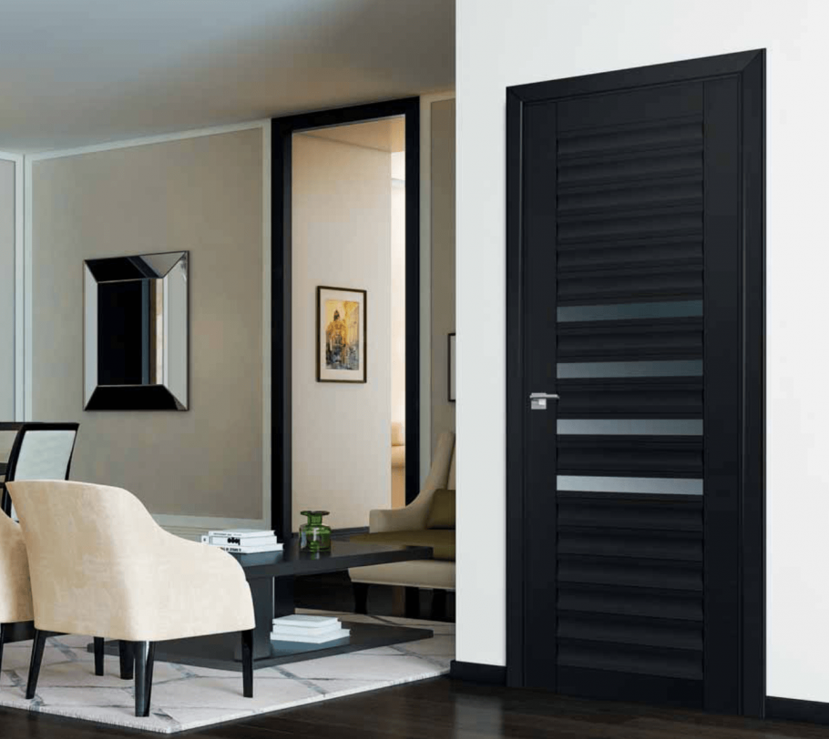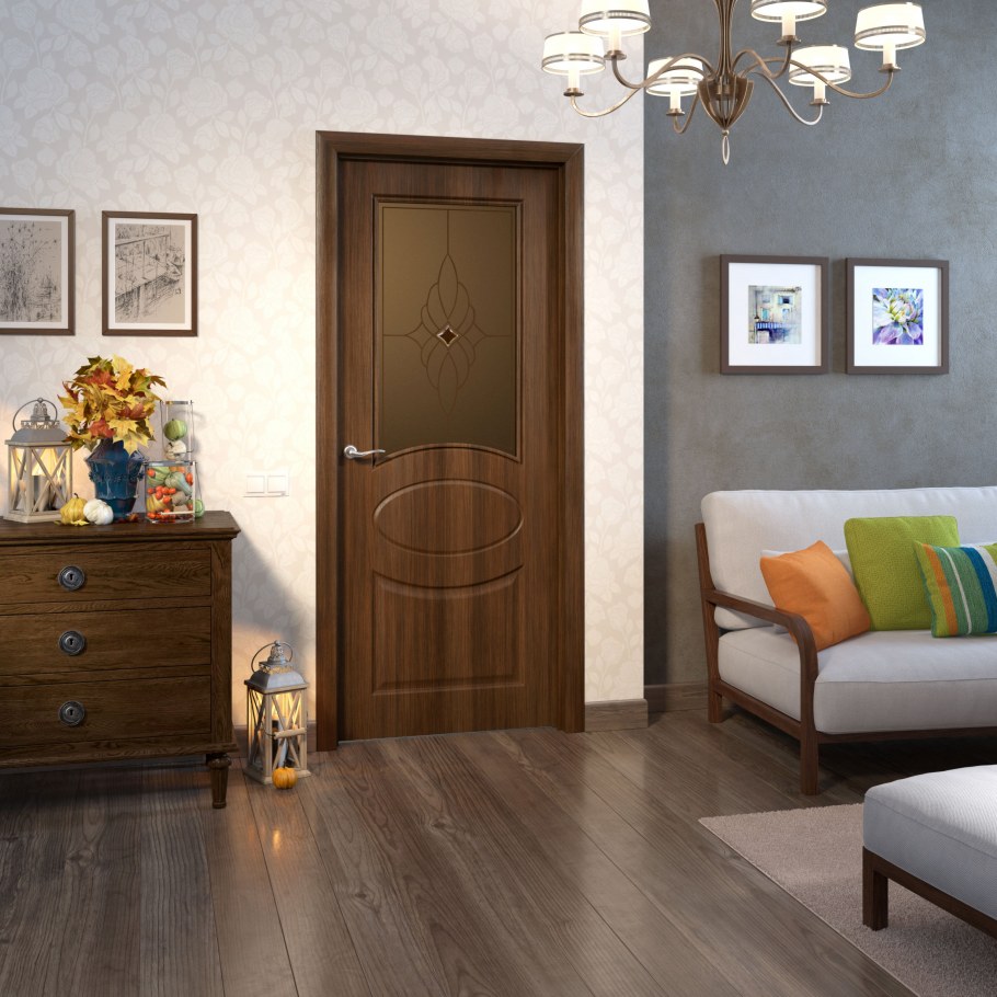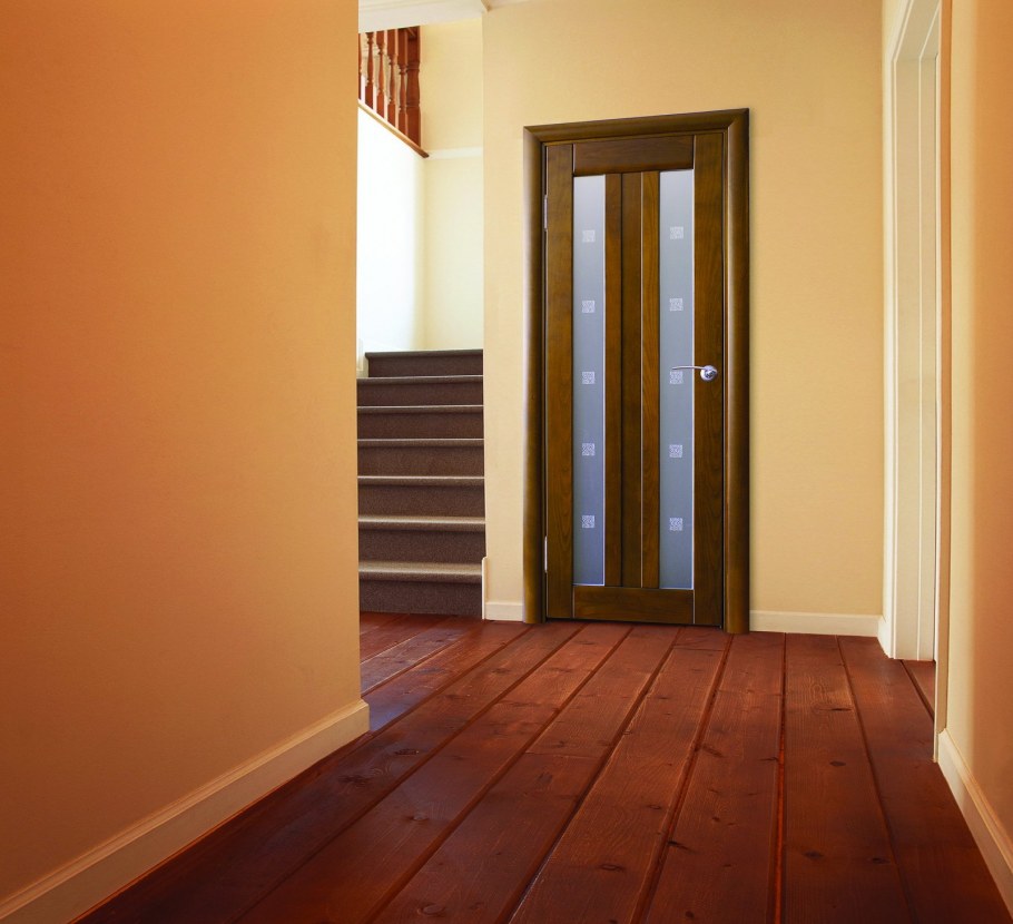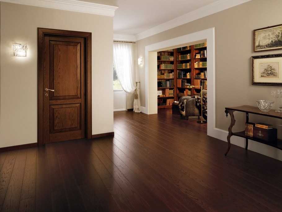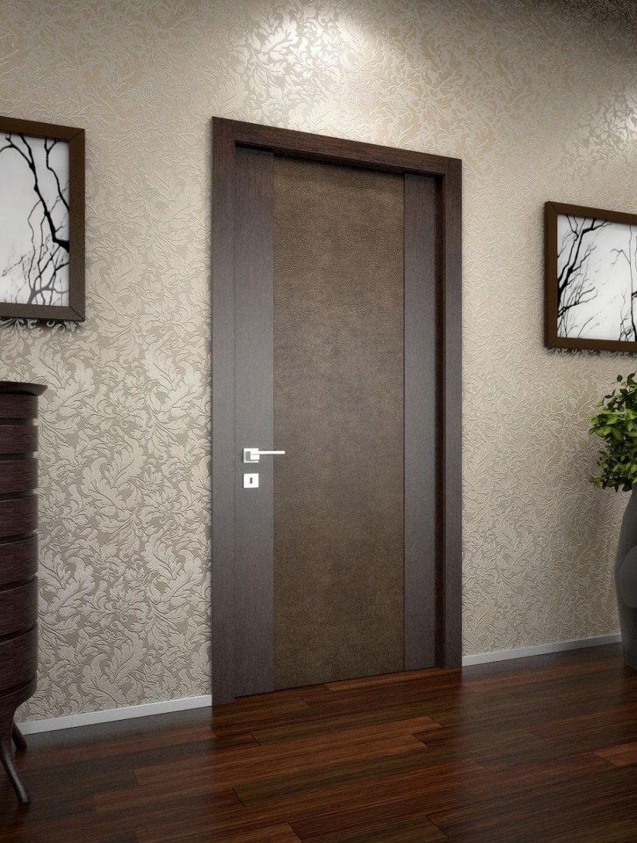 Дверь венге межкомнатная в интерьере с ламинатом Кастелло 4282