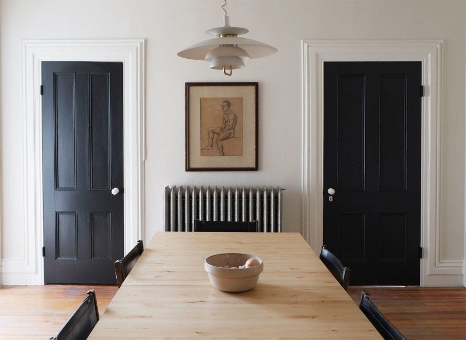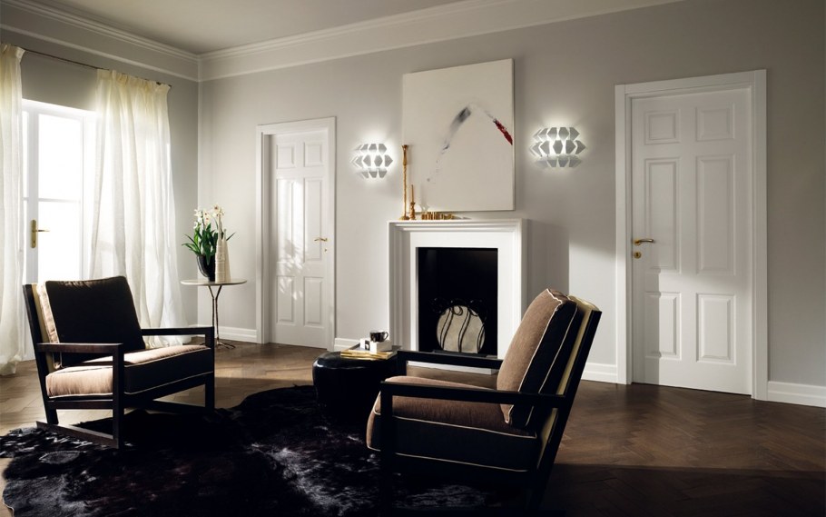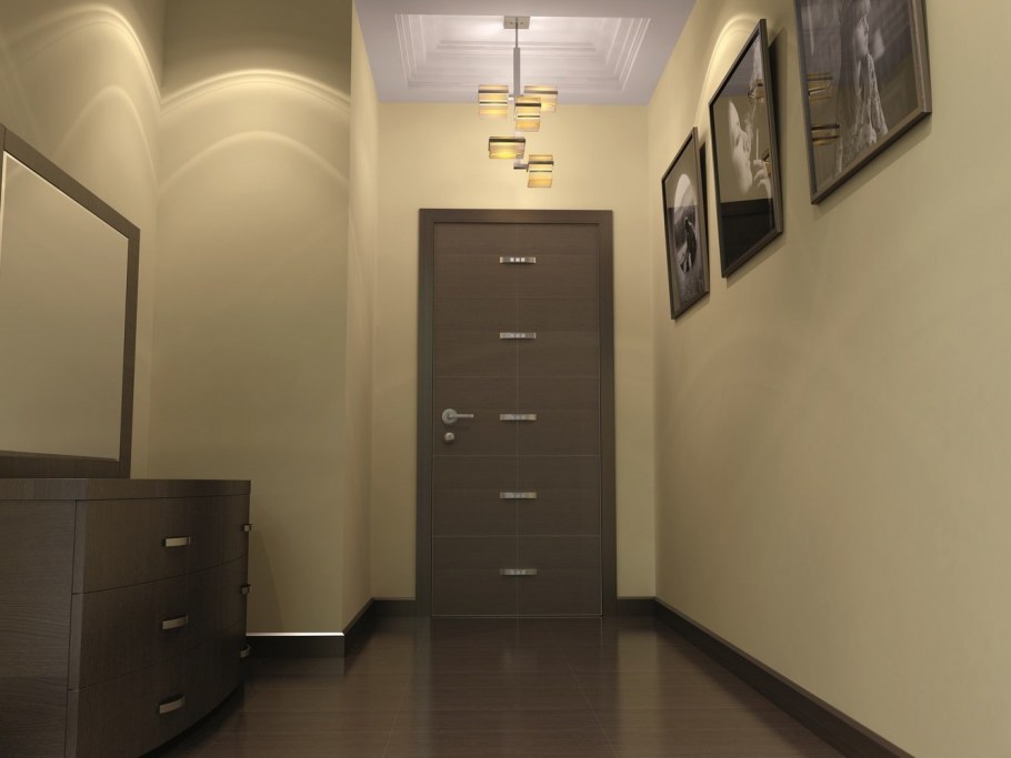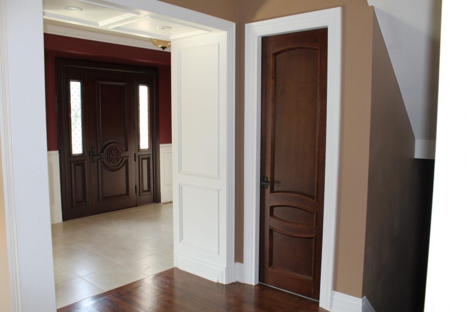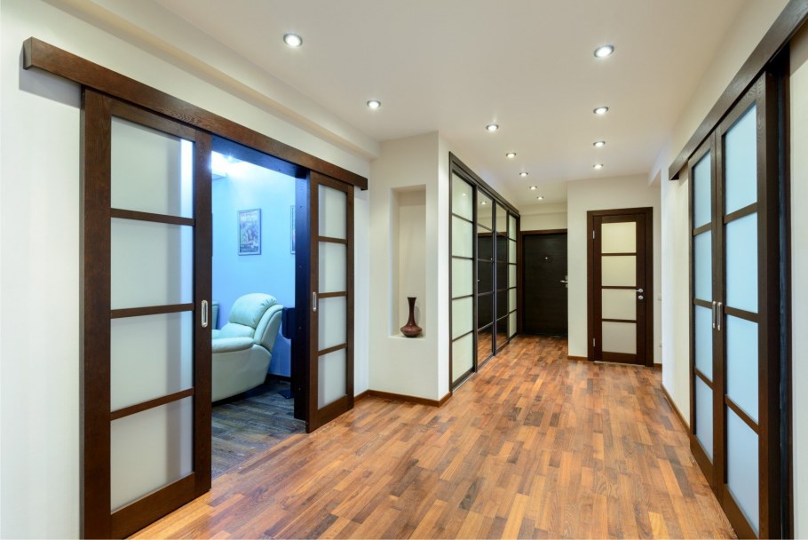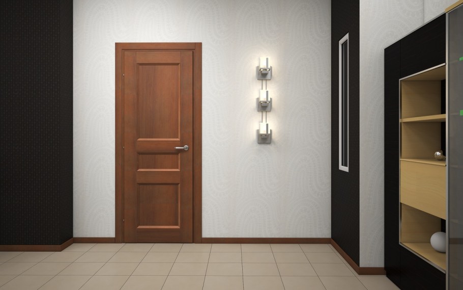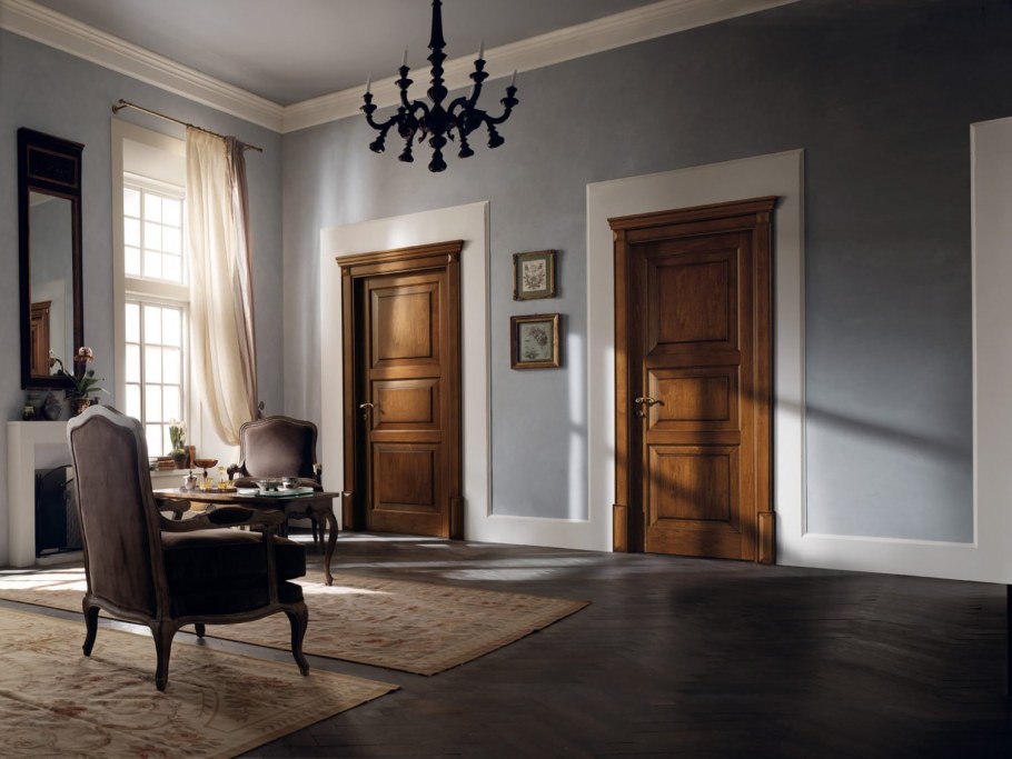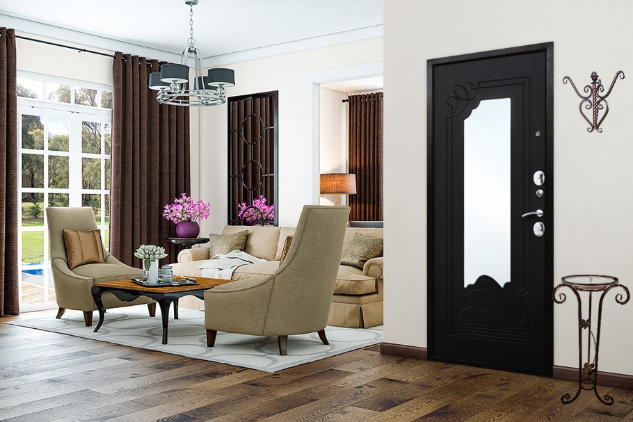 Дверь венге межкомнатная в интерьере с ламинатом Кастелло 4282