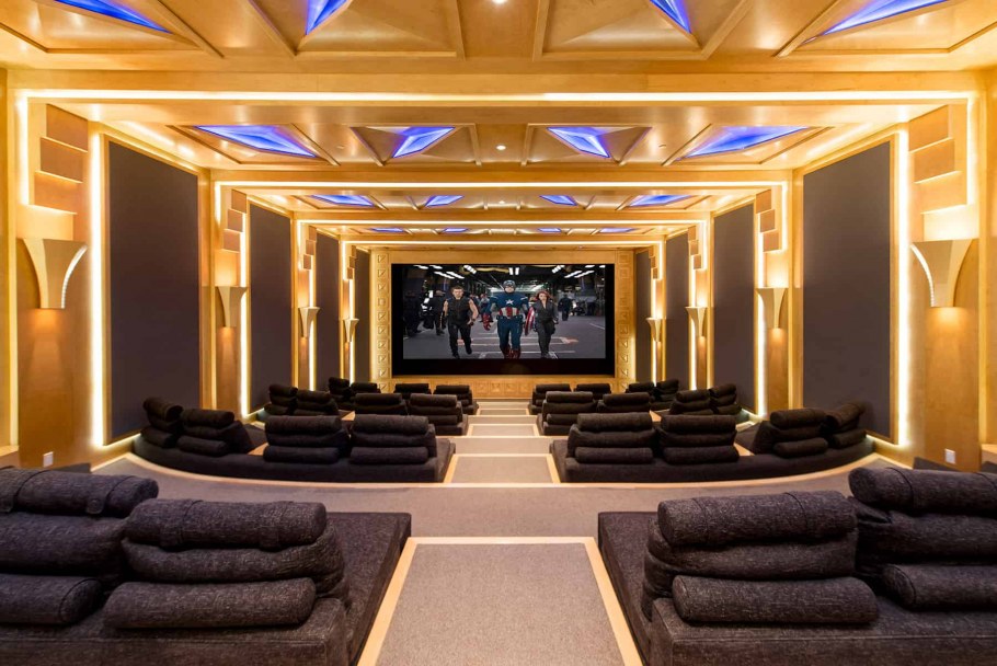 Интерьер домашнего кинотеатра в автомобильном стиле