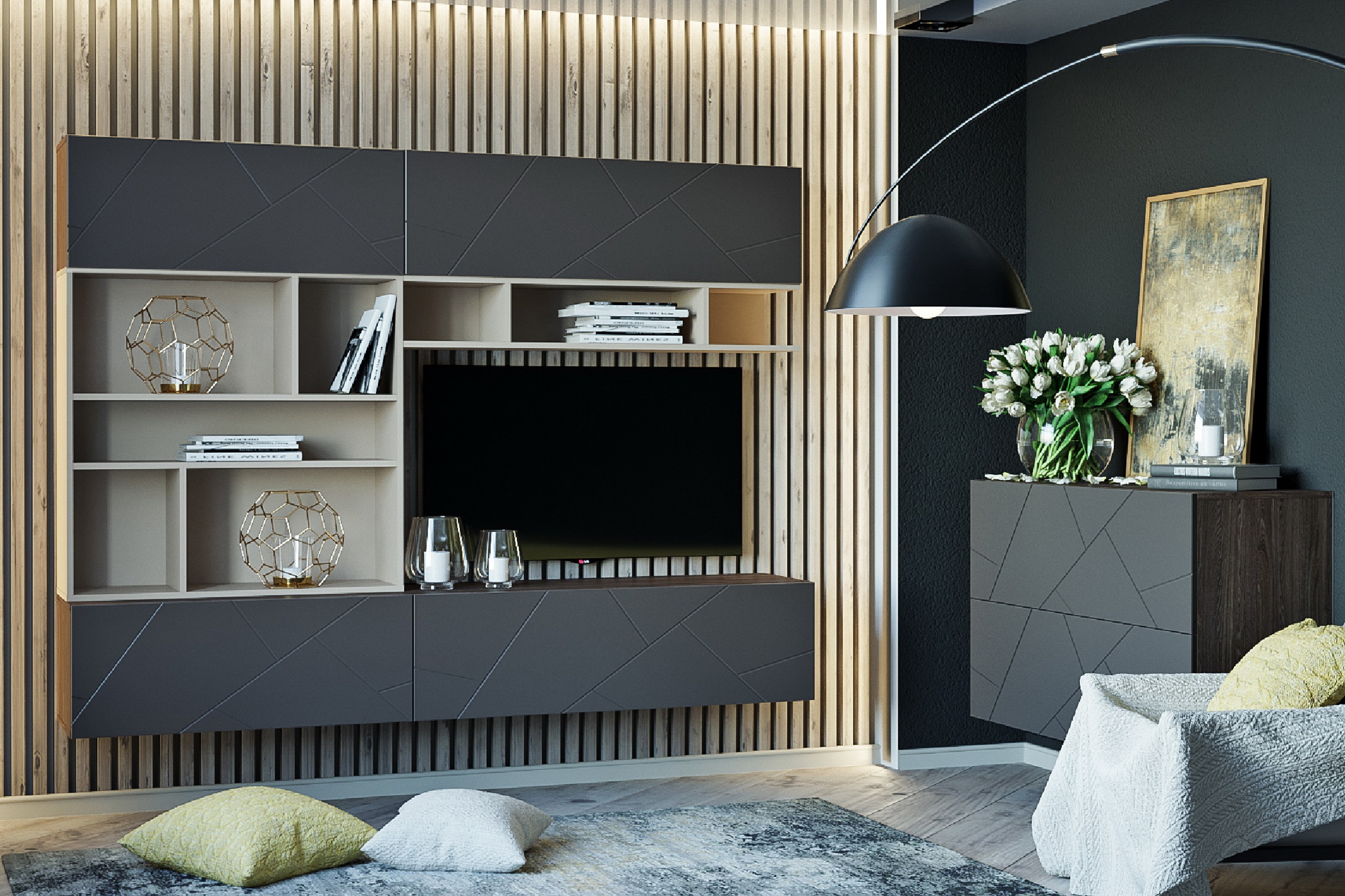 Графитовая мебель в гостиную