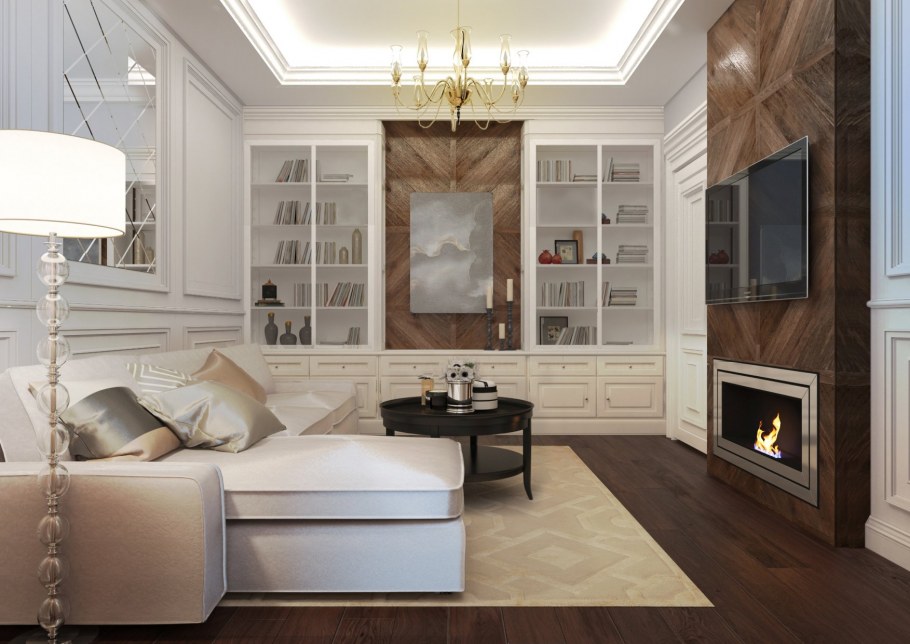 Линкруста в интерьере гостиной в стиле Неоклассика