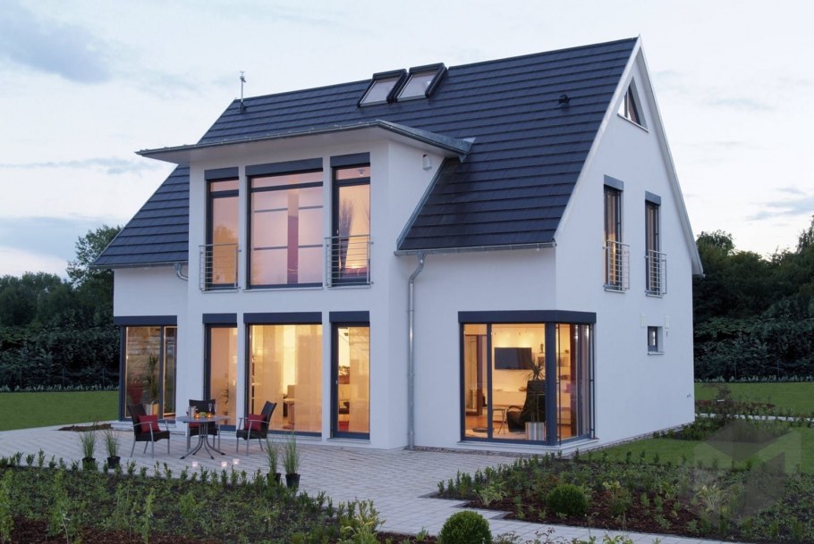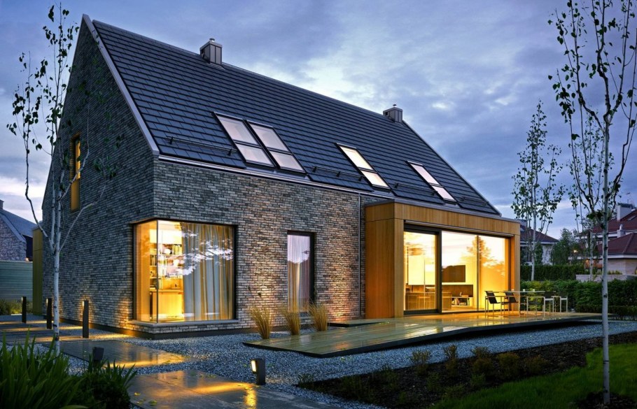 Стильный дом с двускатной крышей
