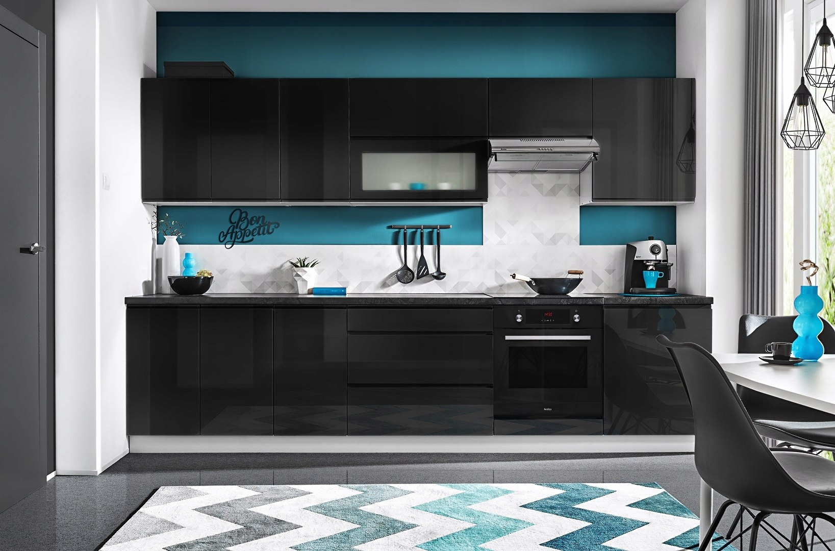 Кухня голубая с черным