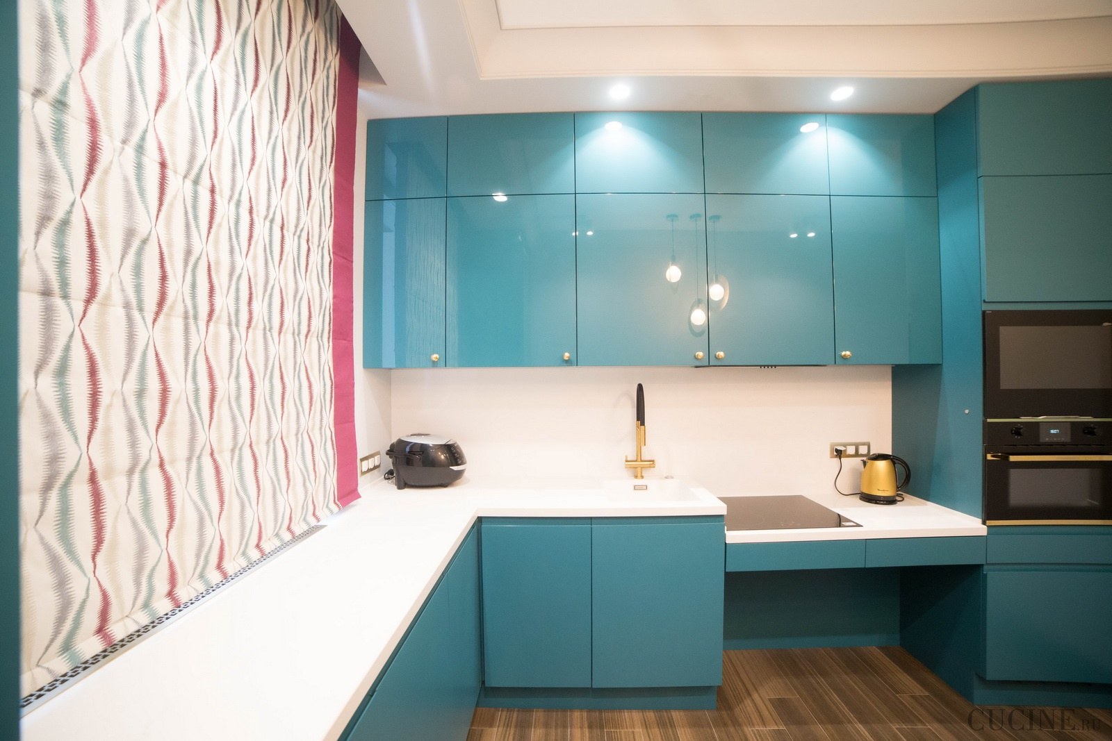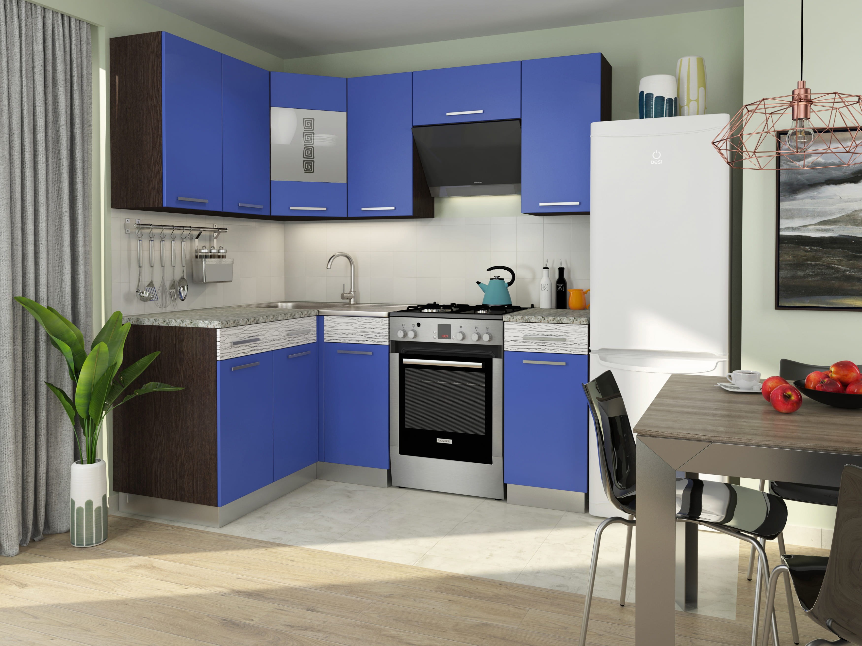 Синяя угловая кухня