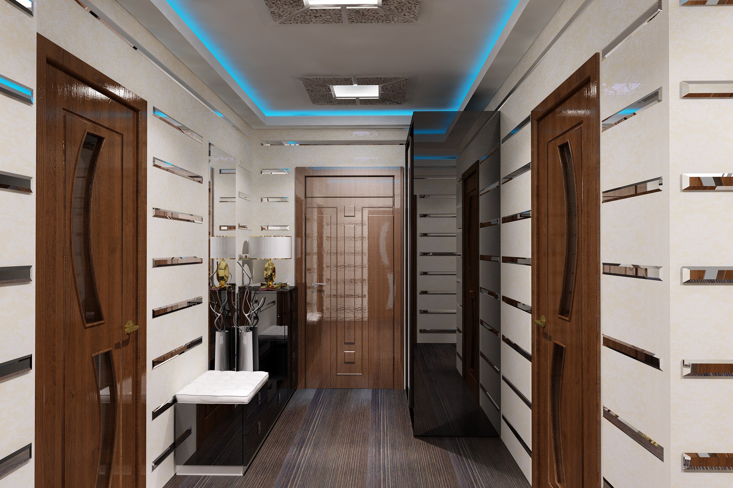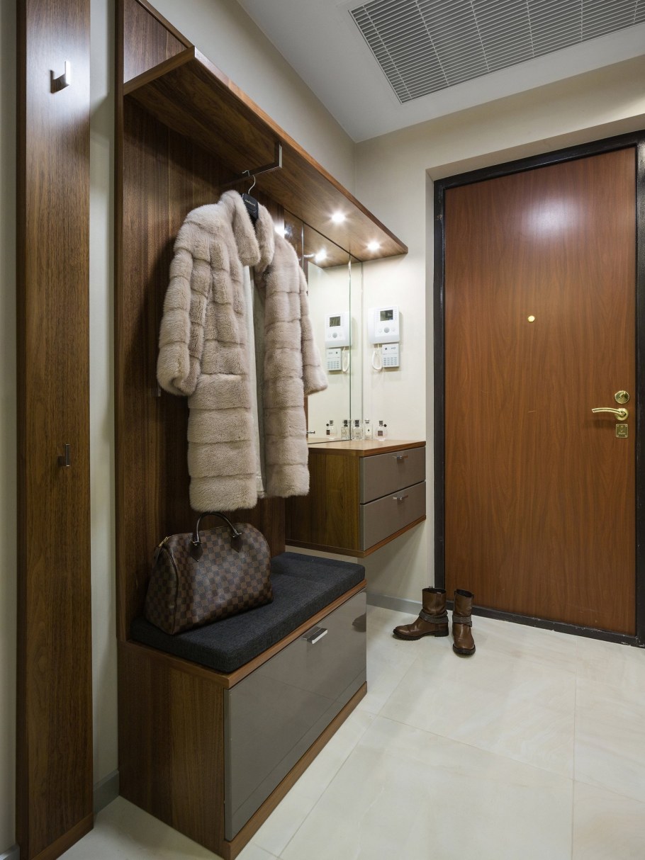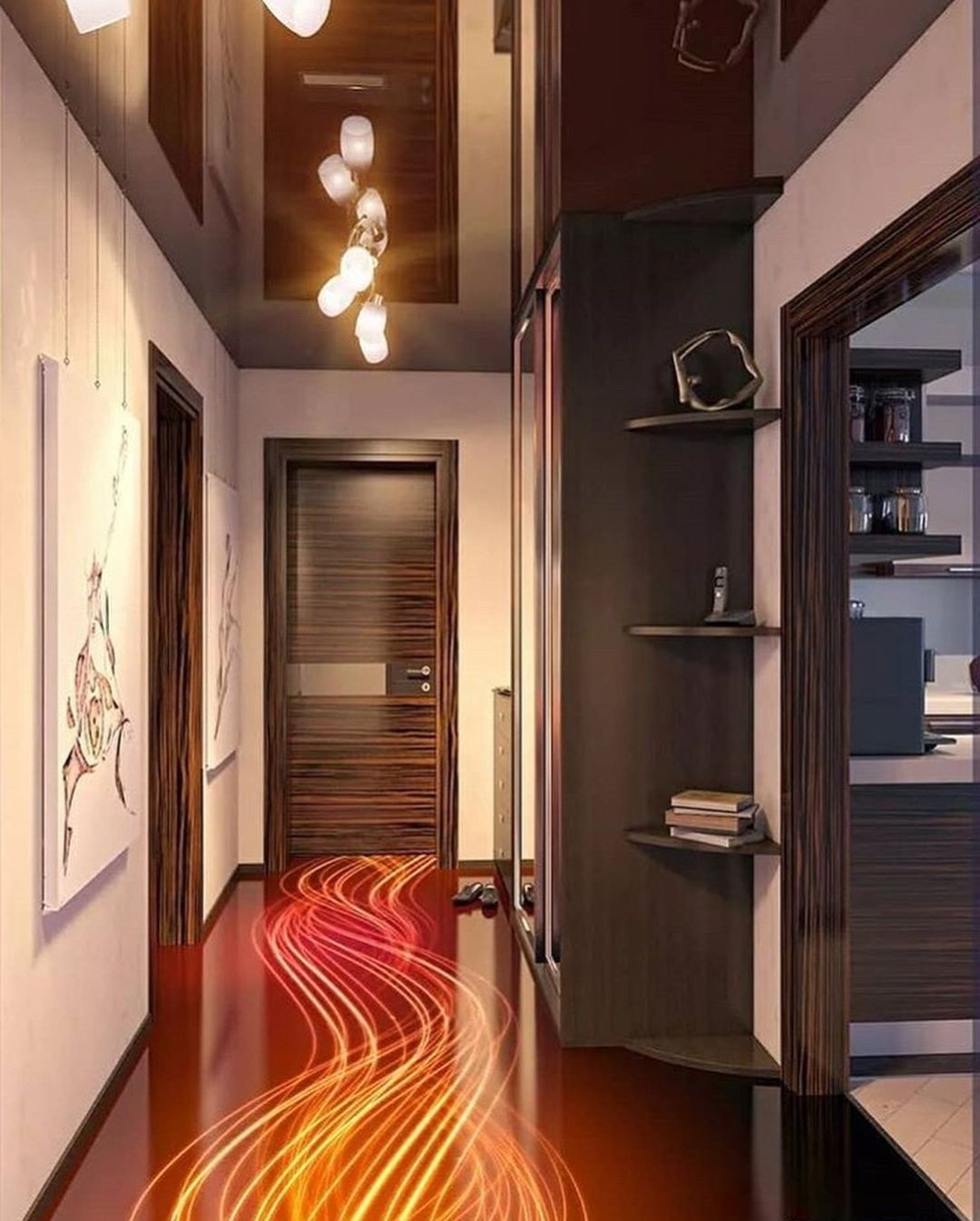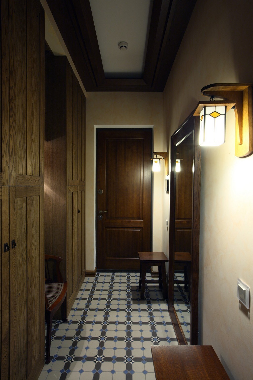 Интерьер прихожей переходящей в кухню в кирпичном стиле