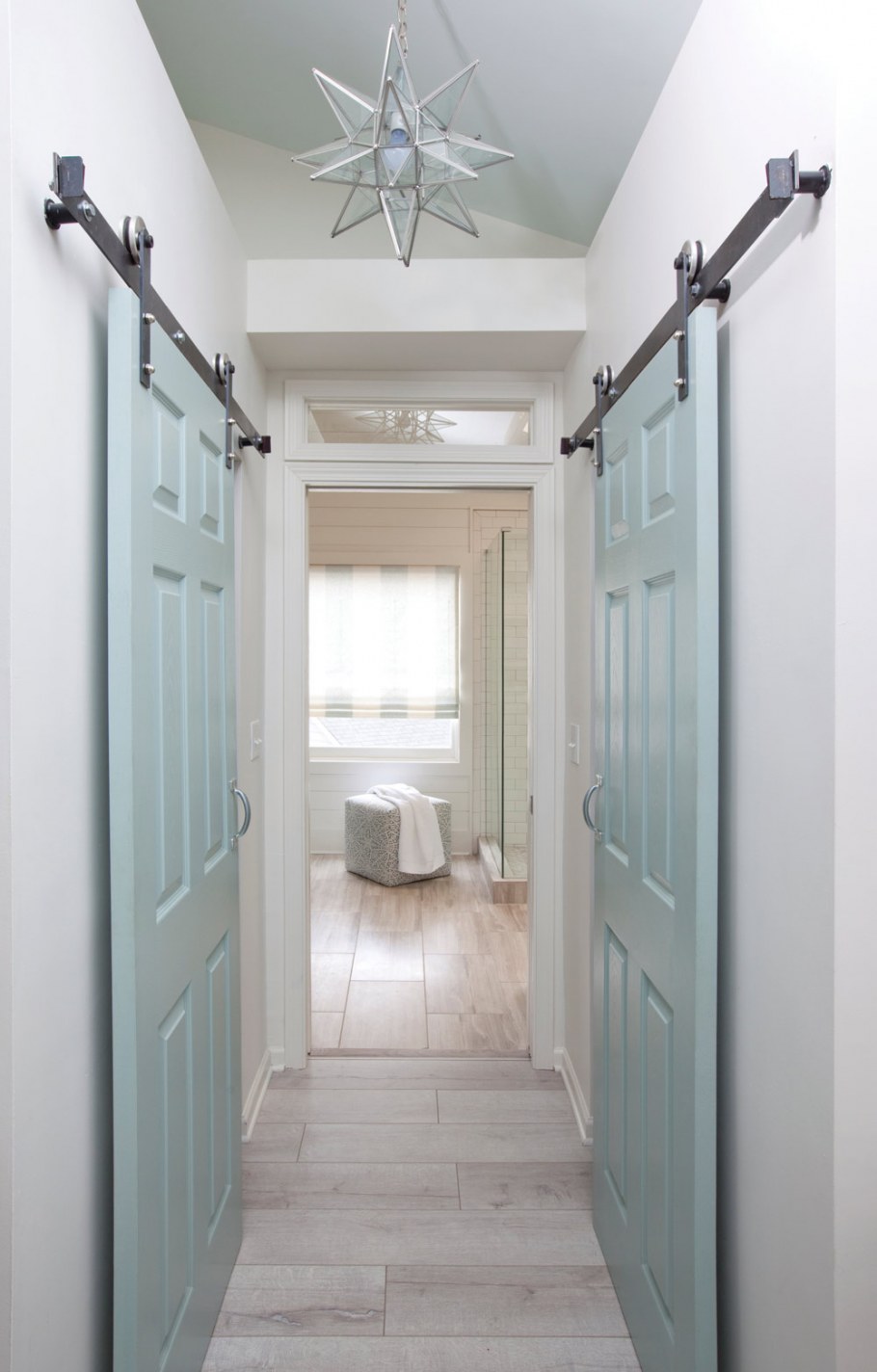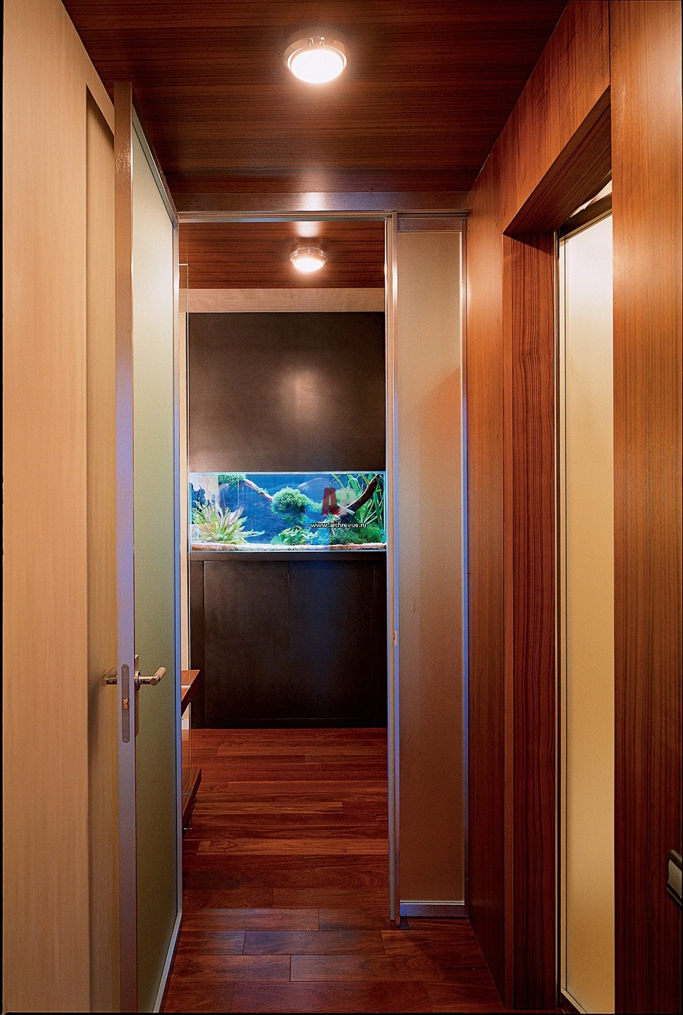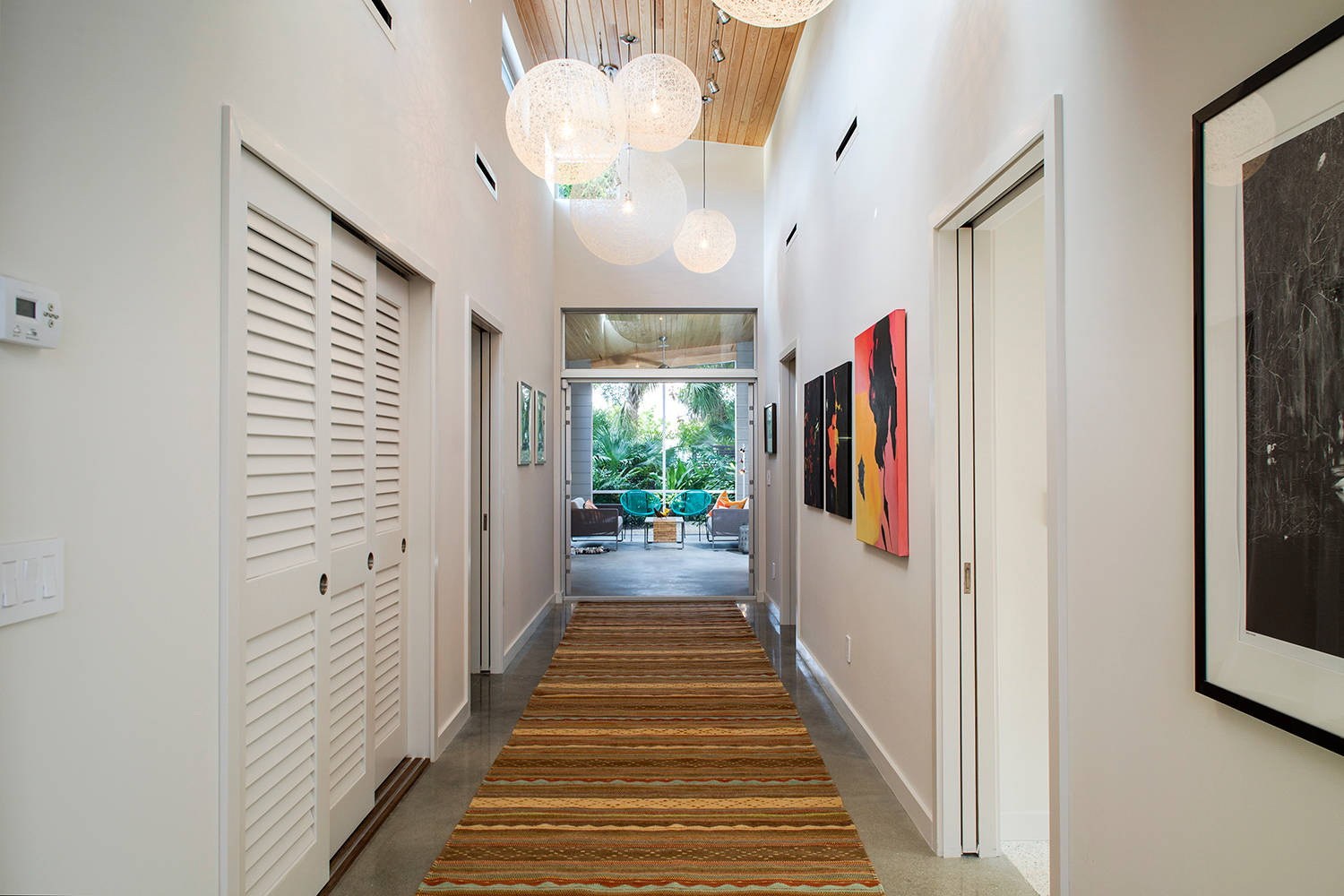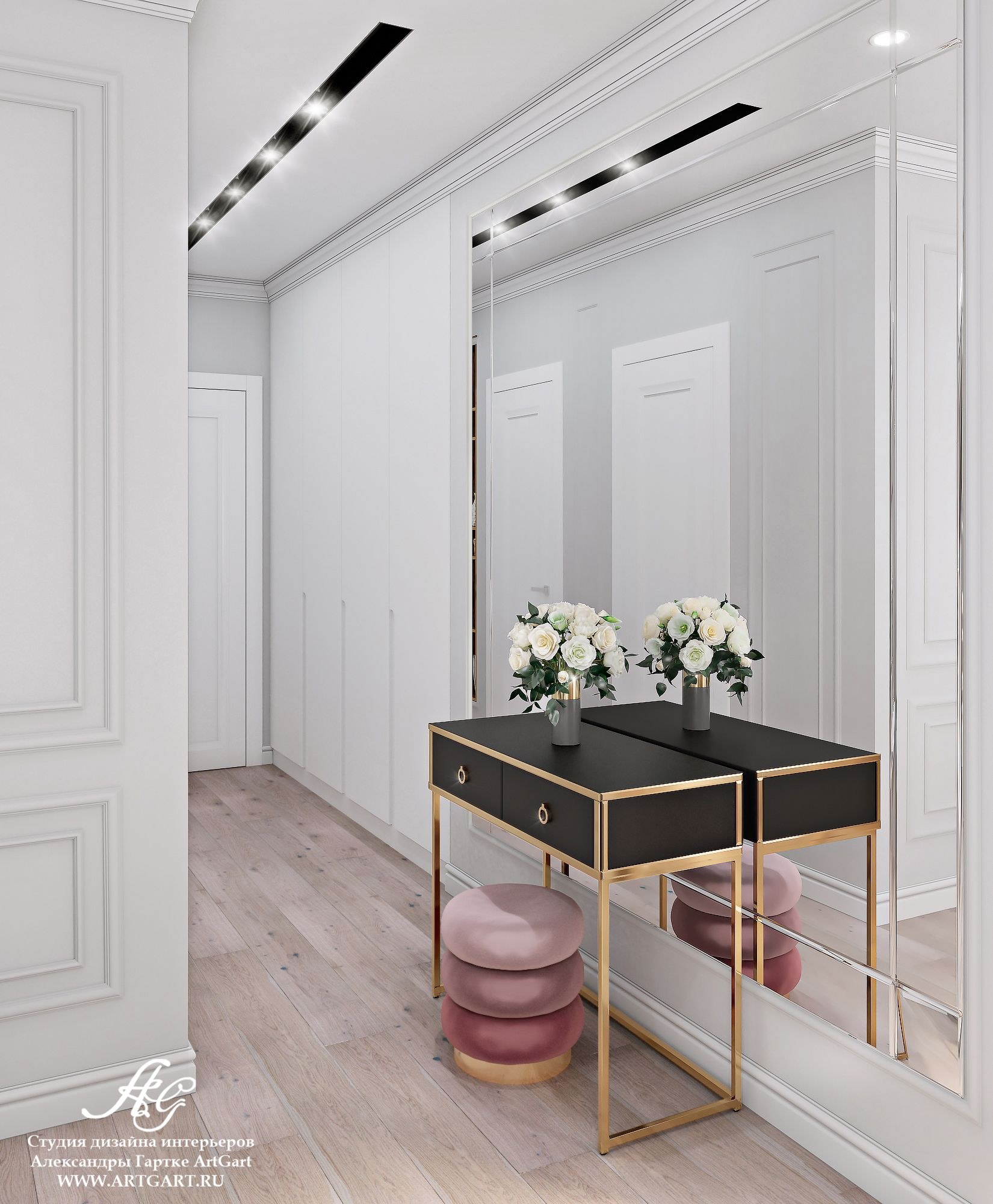 Интерьер прихожей переходящей в кухню в кирпичном стиле