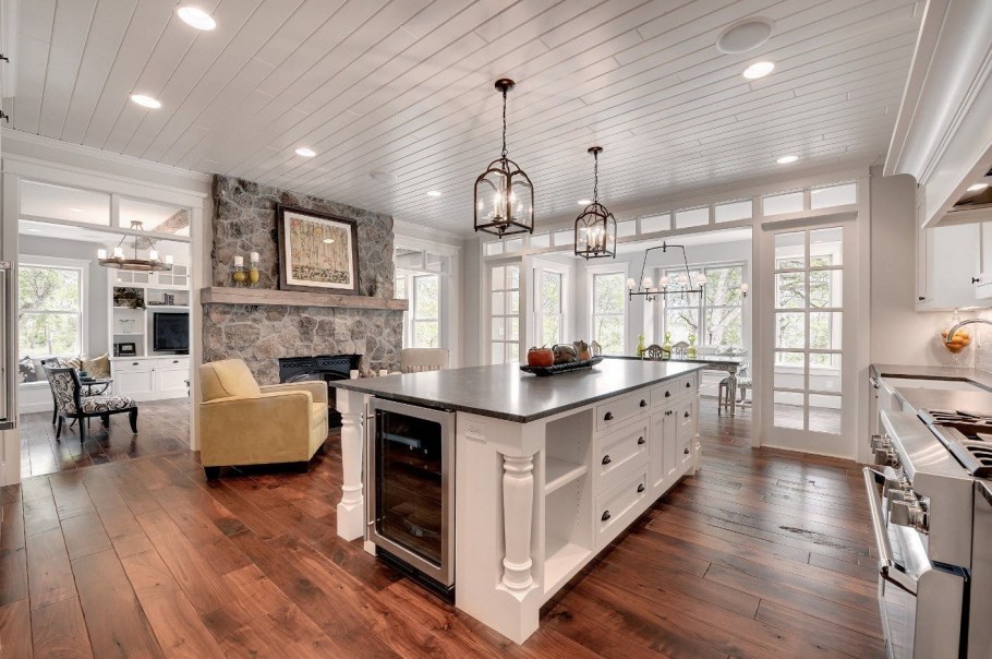 Кухня с островом в загородном доме