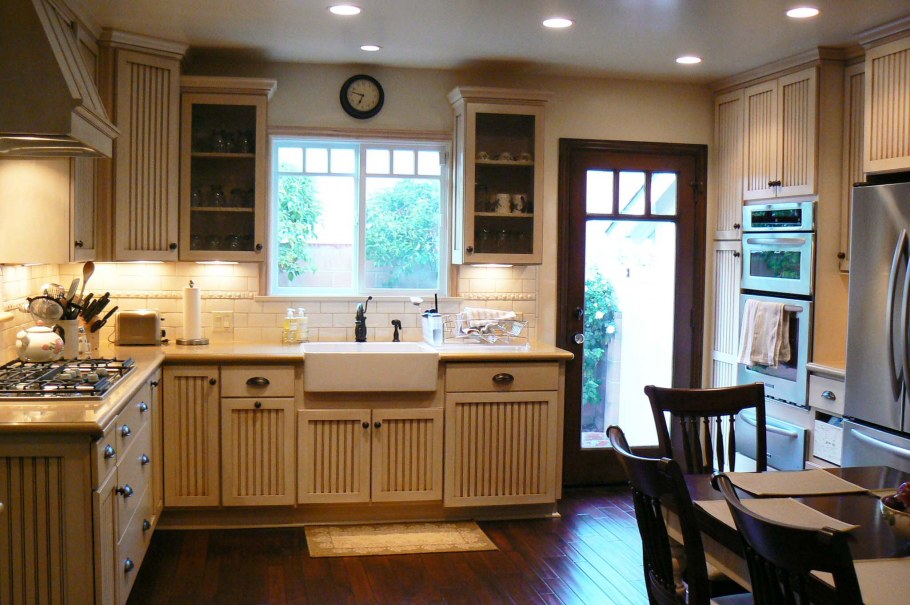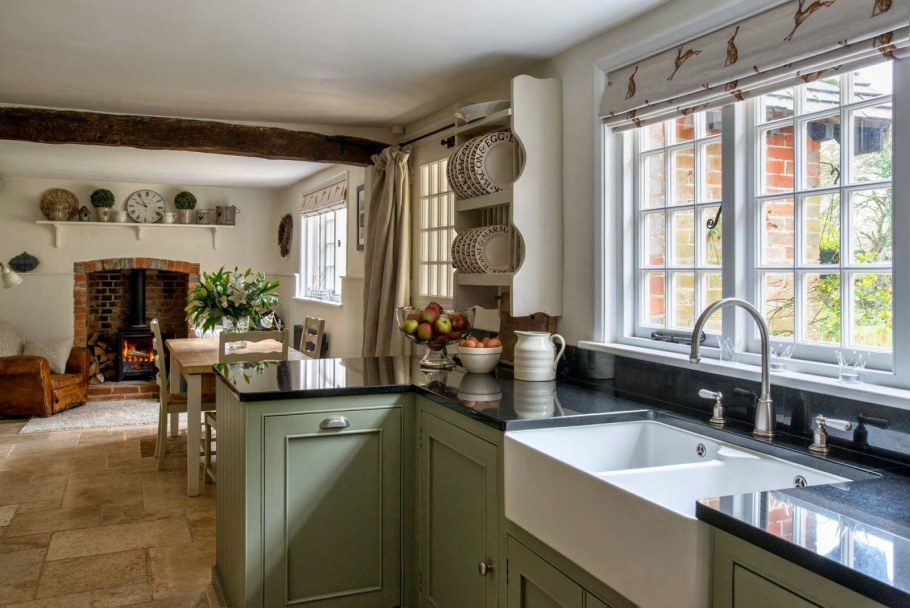 Кухни в коттеджах с окном