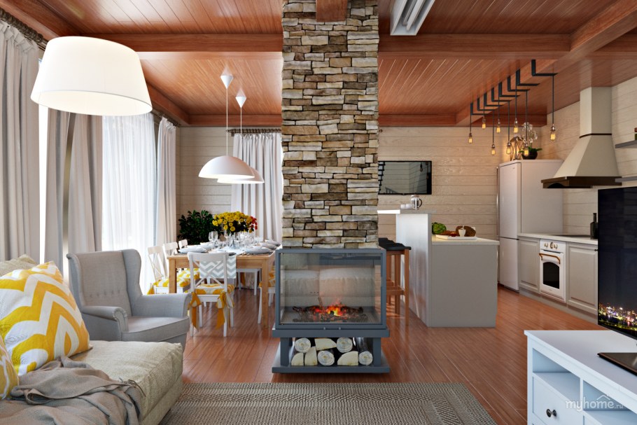 Интерьеры кухни-гостиной в загородном доме