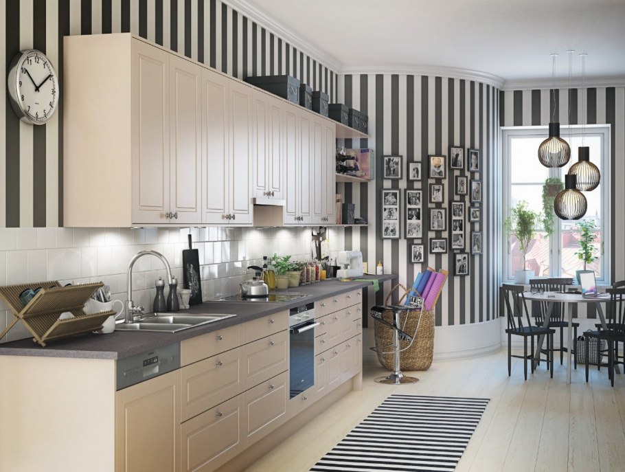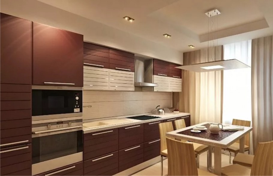 Кухня бежевая белая с коричневым в полоску (43 фото)